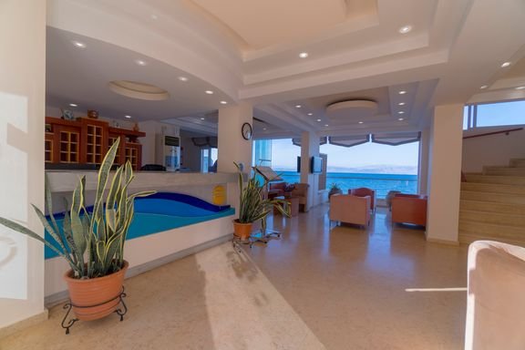czterogwiazdkowy, zbudowany w 1979 r., częściowo odnowiony w 2019 r., 41 pokoi, 1 budynek, 3 piętra, winda, stylowe lobby, całodobowa recepcja, restauracja główna z tarasem z widokiem na morze – dania w formie bufetu lub à la carte, kuchnia śródziemnomorska, dostępne foteliki na dzieci, bar z tarasem z widokiem na morze; sejf w recepcji, parking; bezpłatny internet bezprzewodowy; za opłatą: wypożyczalnia samochodów; akceptowane karty kredytowe: Visa, MasterCard.