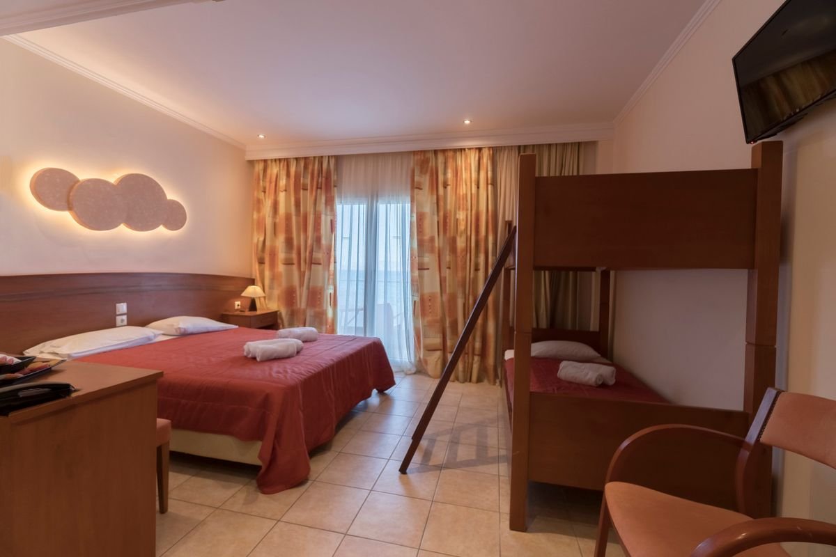 Doskonały na romantyczne wakacje we dwoje lub wspólny wyjazd całą rodziną, zachwyca malowniczym położeniem – z jednej strony można podziwiać niesamowite zielona wzgórza, z drugiej zaś krystalicznie czyste Morze Jońskie. Czas płynie beztrosko podczas odpoczynku na plaży lub w centrum spa, gdzie Goście mogą naładować baterie na kolejny dzień w saunie lub podczas masażu, warto też wybrać się na spacer do centrum Benitses. Przestronne pokoje, wszystkie z widokiem na morze, są gwarancją komfortu i pomieszczą nawet 4-osobowe rodziny.