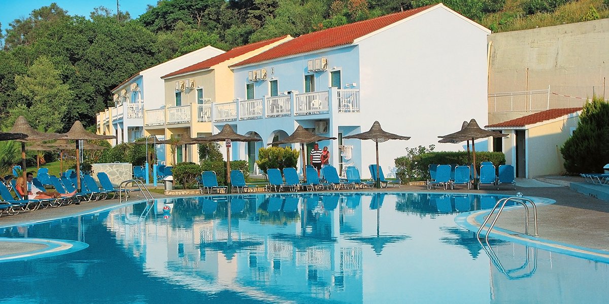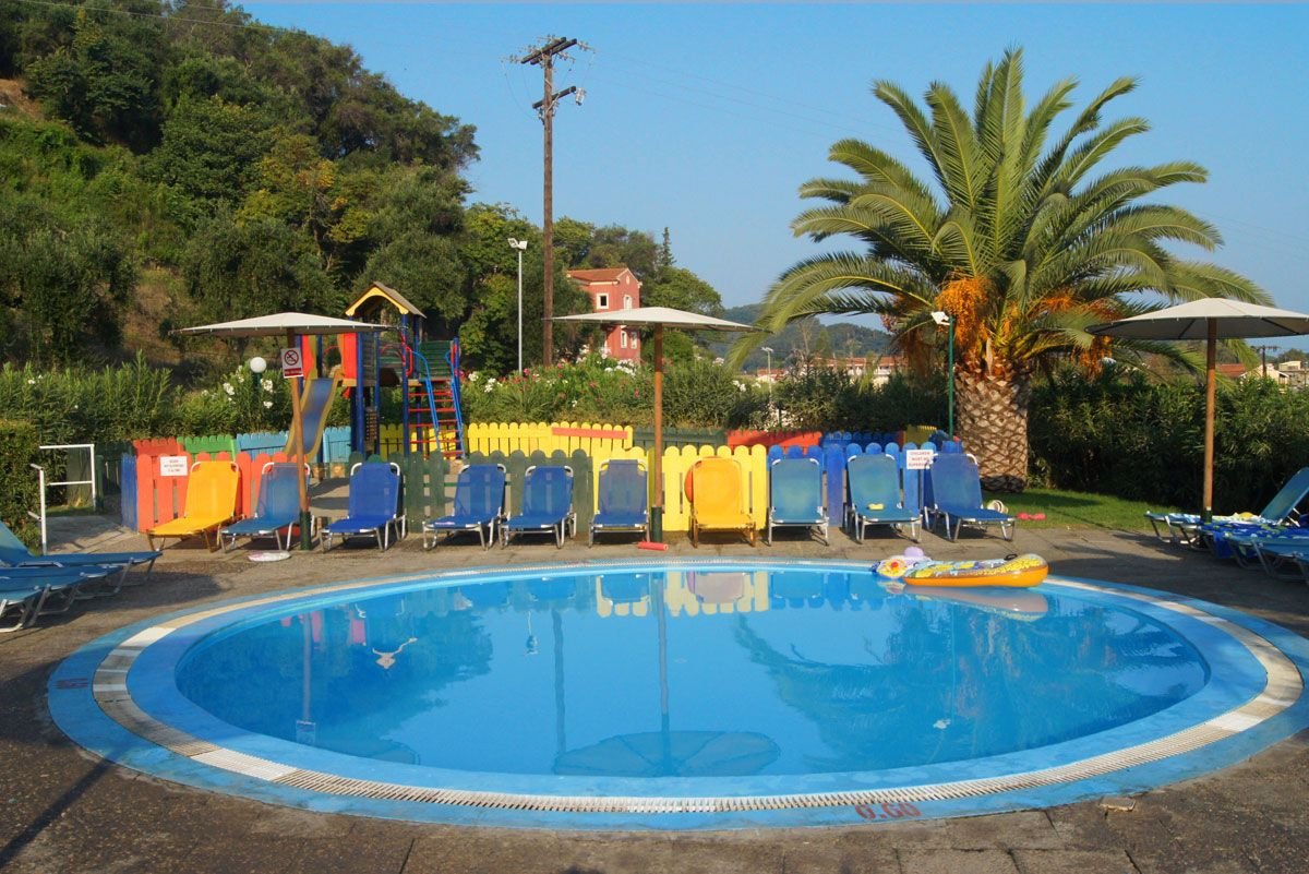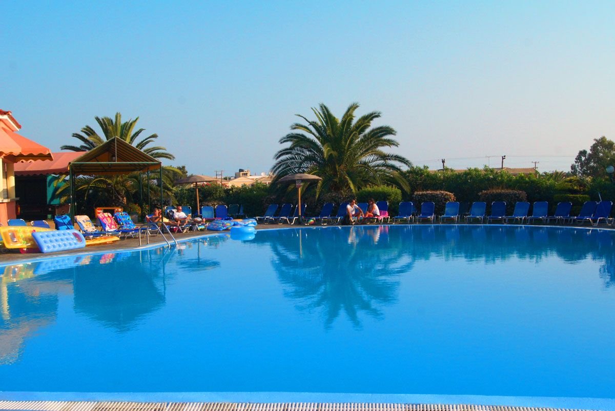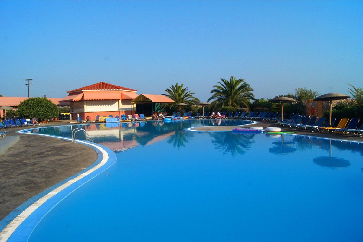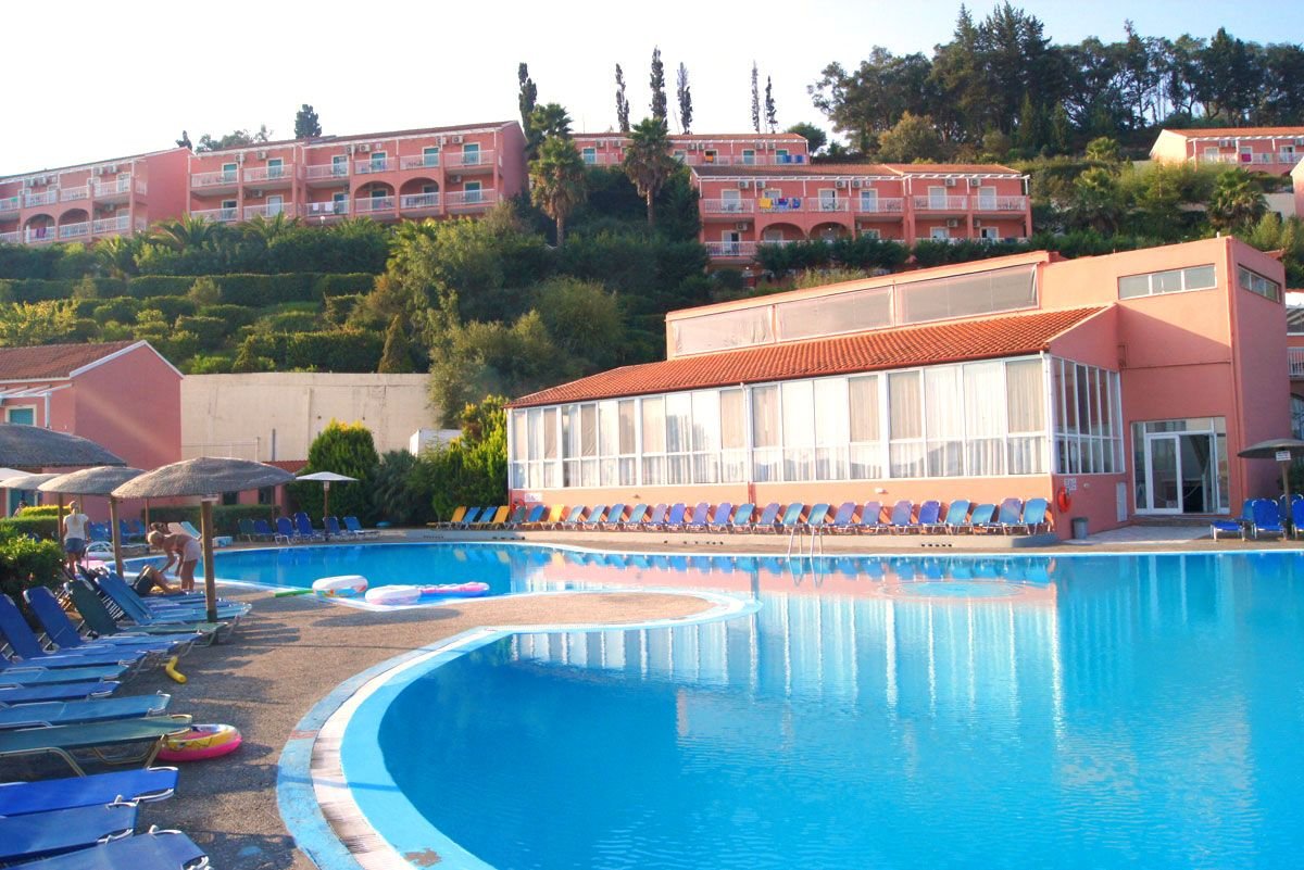 trzygwiazdkowy, zbudowany w 2002 r., łącznie 180 studiów i apartamentów, budynek główny i 12 piętrowych willi w zabudowie szeregowej; duży hol, całodobowa recepcja, restauracja główna, dania w formie bufetu, kuchnia międzynarodowa, dostępne foteliki dla dzieci, dania wegetariańskie, bar przy basenie, bar Camelot przy budynku głównym (nieobjęty all inclusive) czynny od 23.00 do późna; minimarket, wypożyczalnia ręczników plażowych w recepcji (3 EUR za ręcznik + kaucja 7 EUR), taras z widokiem na morze, basen i częściowo na miejscowość Sidari, ogród; za opłatą: kawiarenka internetowa (ok. 1 EUR/10 min); różnice poziomów na terenie hotelu; między budynkami kursuje minibus (8.00-24.00); akceptowane karty kredytowe: Visa, MasterCard.