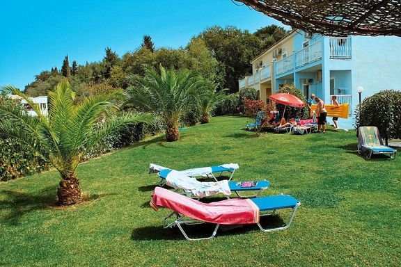ok. 500 m od centrum SIDARI, gdzie można znaleźć każdy rodzaj rozrywki, ok. 40 km od miasta Korfu; ok. 42 km od portu lotniczego na Korfu; tarasowo zbudowany na wzgórzu, zwrócony w stronę morza, ok. 300 m od przystanku autobusowego (ok. 3,6 EUR/Korfu, Kassiopi, Acharavi, Roda).