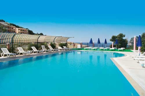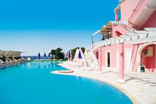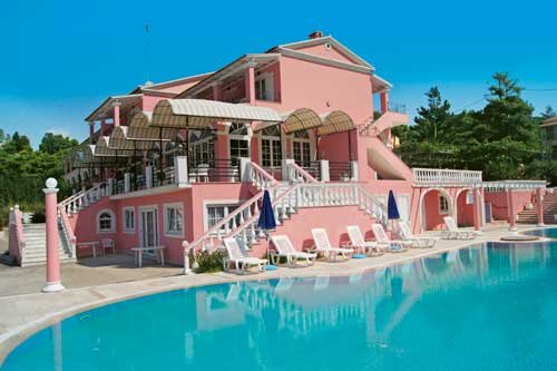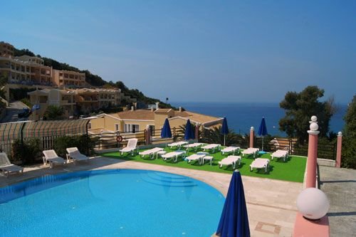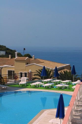 w miejscowości ERMONES, na wzgórzu, ok. 1 km od małej miejscowości Vatos, ok. 15 km od miasta Korfu; ok. 15 km od portu lotniczego w Korfu; przystanek autobusowy ok. 250 m od hotelu (ok. 3 EUR/Korfu).