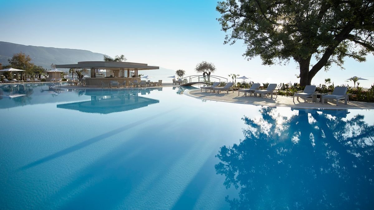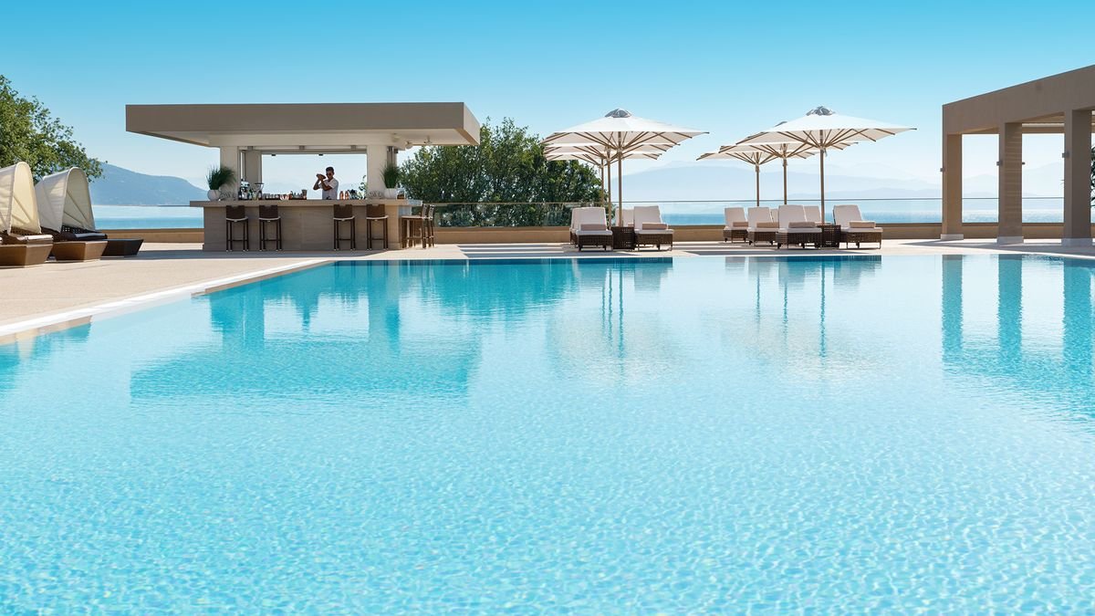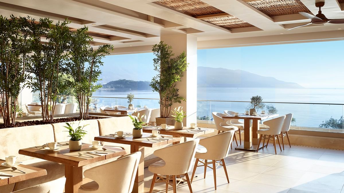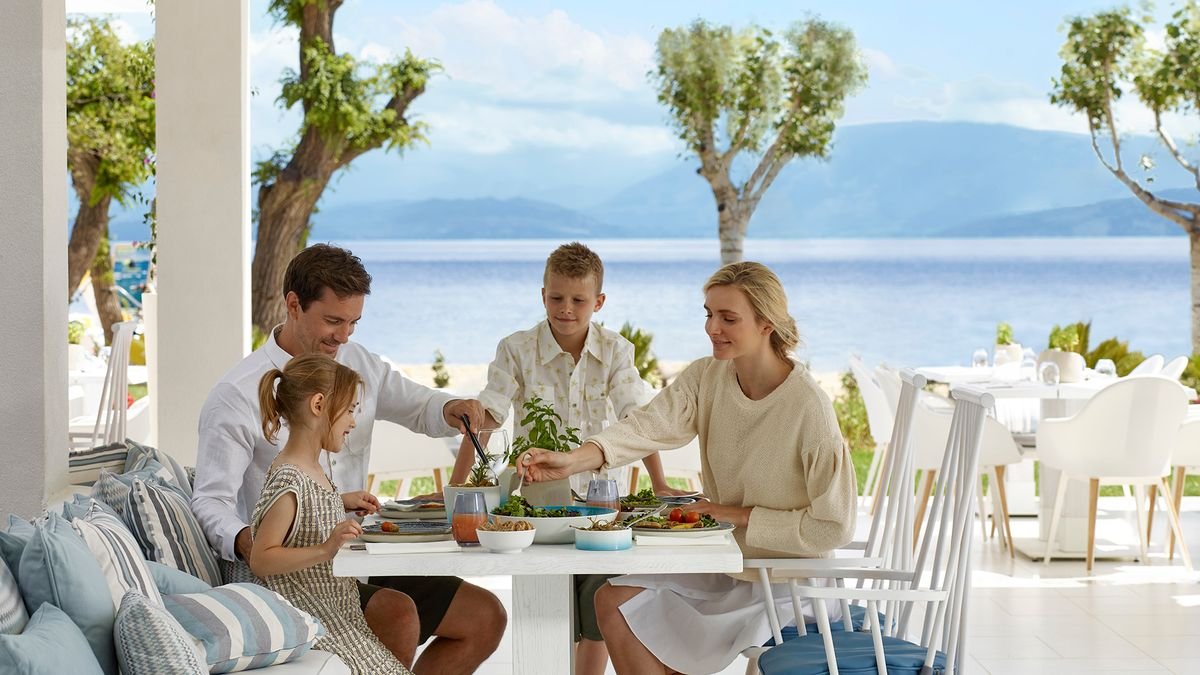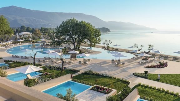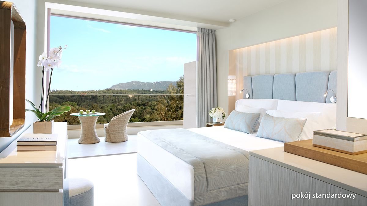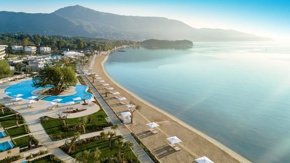 pięciogwiazdkowy, elegancki i nowoczesny, zbudowany w 2018 r., 411 pokoi, 5 pięter, 2 budynki główne i bungalowy, 2 windy, przestronne lobby, całodobowa recepcja, restauracja Flavors z widokiem na morze – dania w formie bufetu, kuchnia śródziemnomorska, dostępne foteliki i menu dla dzieci, dania wegetariańskie, 6 restauracji à la carte (wymagana wcześniejsza rezerwacja): Anaya – azjatycka, dostępne menu dla dzieci, Ouzo przy plaży (wydzielona strefa tylko dla dorosłych) – grecka, wyróżniona 1 Gwiazdką Michelin, dostępne foteliki i menu dla dzieci, dania wegetariańskie, Provence (wydzielona strefa tylko dla dorosłych) – kuchnia prowansalska i francuska, dostępne foteliki i menu dla dzieci, Kerkyra przy plaży – kuchnia lokalna, dostępne foteliki i menu dla dzieci, Ergon (wydzielona strefa tylko dla dorosłych) – grecka, dostępne foteliki i menu dla dzieci, Fresco - kuchnia włoska, dostępne foteliki i menu dla dzieci, 6 barów, w tym w lobby, przy basenach i Wine Bar (tylko dla dorosłych); room-service, parking; ogród, bezpłatny internet bezprzewodowy; za opłatą: opiekunka do dziecka, fryzjer, pralnia; akceptowane karty kredytowe: Visa, MasterCard.