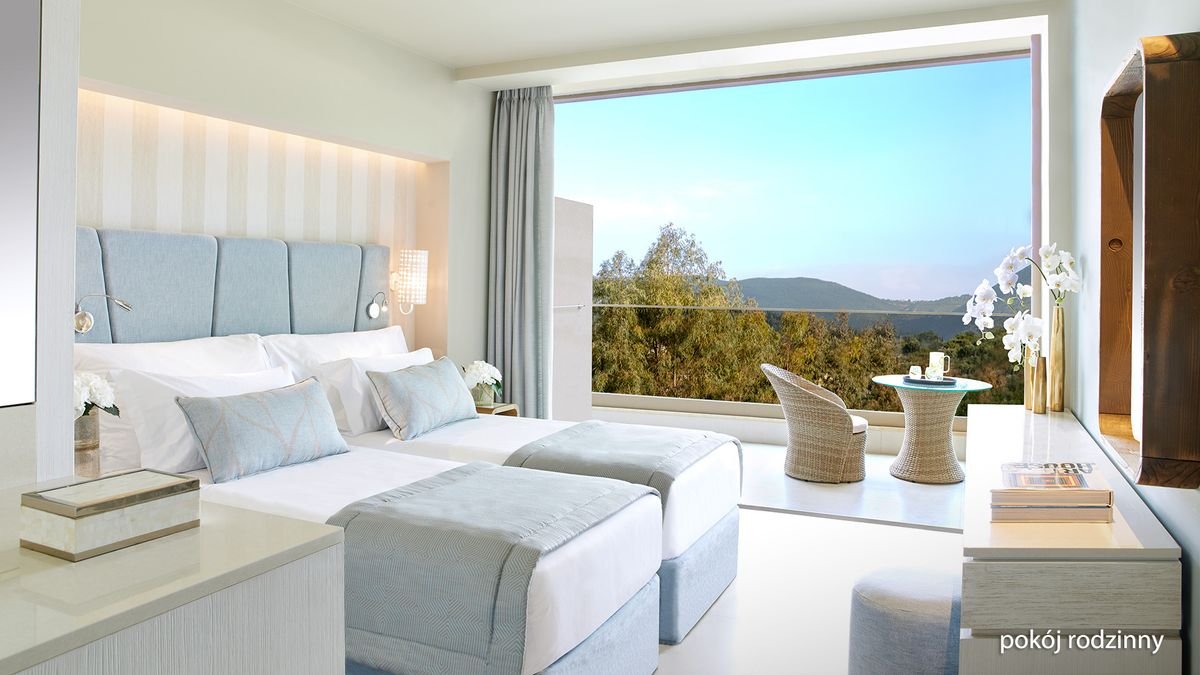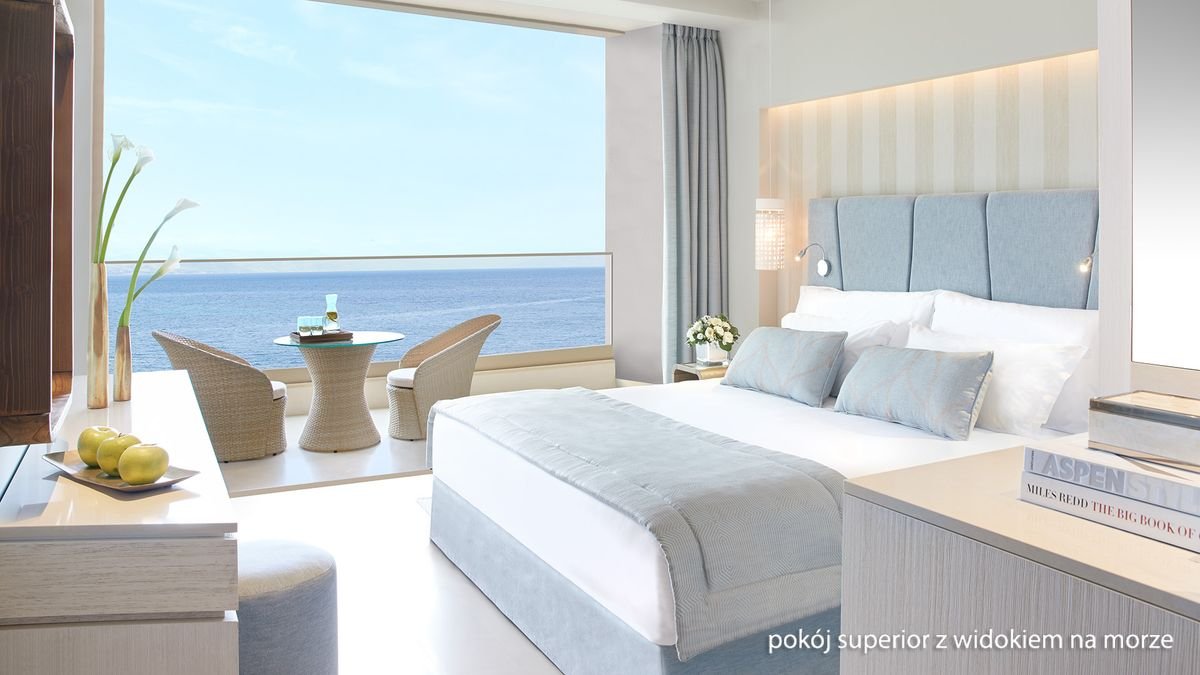 standardowy: 2-os., ok. 23 m², elegancki i nowoczesny, indywidualnie sterowana klimatyzacja, łazienka (wanna lub prysznic, wc; suszarka, szlafrok, kapcie), internet bezprzewodowy, telewizja satelitarna, zestaw do kawy/herbaty, minibar, sejf; bezpłatne łóżeczko dla dziecka do 2 lat na zamówienie przed przyjazdem; balkon (stolik i krzesełka); widok na morze za dopłatą; ; superior: 2-os., ok. 25 m², elegancki i nowoczesny, wyposażenie jak w pokoju standardowym; pokój superior i widok na morze za dopłatą; rodzinny: 4-os., ok. 50 m², elegancki i nowoczesny, 2 łazienki, 2 pomieszczenia, wyposażenie jak w pokoju standardowym; pokój rodzinny i widok na morze za dopłatą; junior suite: 2-os. (możliwość 1 dostawki), ok. 35 m², elegancki i nowoczesny, wydzielona część dzienna, wyposażenie jak w pokoju standardowym; junior suite i widok na morze za dopłatą.
