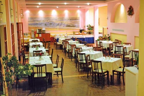 śniadanie (8.00-10.00), obiad (12.30-14.00), kolacja (19.00-21.00) w formie bufetu w restauracji głównej; kawa i lody w barze przy basenie (16.00-17.00); lokalne napoje alkoholowe i bezalkoholowe w wyznaczonych barach (7.00-23.00; w barze w części Thinalos: 10.00-15.00); wymagane noszenie opasek all inclusive.