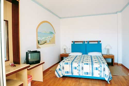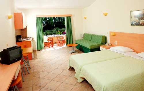 standardowy: (część Ionian), 2-os. (możliwość 1 dostawki), ok. 20-25 m², zadbany, indywidualnie sterowana klimatyzacja, łazienka (wanna, wc; suszarka), telewizja satelitarna, polski kanał, lodówka, telefon, sejf (płatny ok. 10 EUR/tydz., 15 EUR/2 tyg.); balkon lub taras (stolik i krzesełka); suite: (część Ionian), 2-os. (możliwość 1 lub 2 dostawek), 45 m², elegancki, nowoczesny, wyposażenie jak w pokoju standardowym, dodatkowo zestaw do kawy/herbaty i aneks kuchenny, w łazience wanna z jacuzzi; studio: (część Thinalos), 2-os. (możliwość 1 lub 2 dostawek), 40 m², nowoczesny, klimatyzowany (15.06.-15.09.), łazienka (wanna, prysznic, wc; suszarka), telewizja satelitarna, polski program, telefon, lodówka, aneks kuchenny, zestaw do kawy/herbaty; sejf (płatny ok. 10 EUR/tydz.); balkon lub taras (stolik i krzesełka); apartament: (część Thinalos), 4-os., (możliwość 1 dostawki), 60 m², nowoczesny, 2 pomieszczenia, wyposażenie jak w studiu; we wszystkich typach pokoi bezpłatne łóżeczko dla dziecka do 2 lat na zamówienie przed przyjazdem.