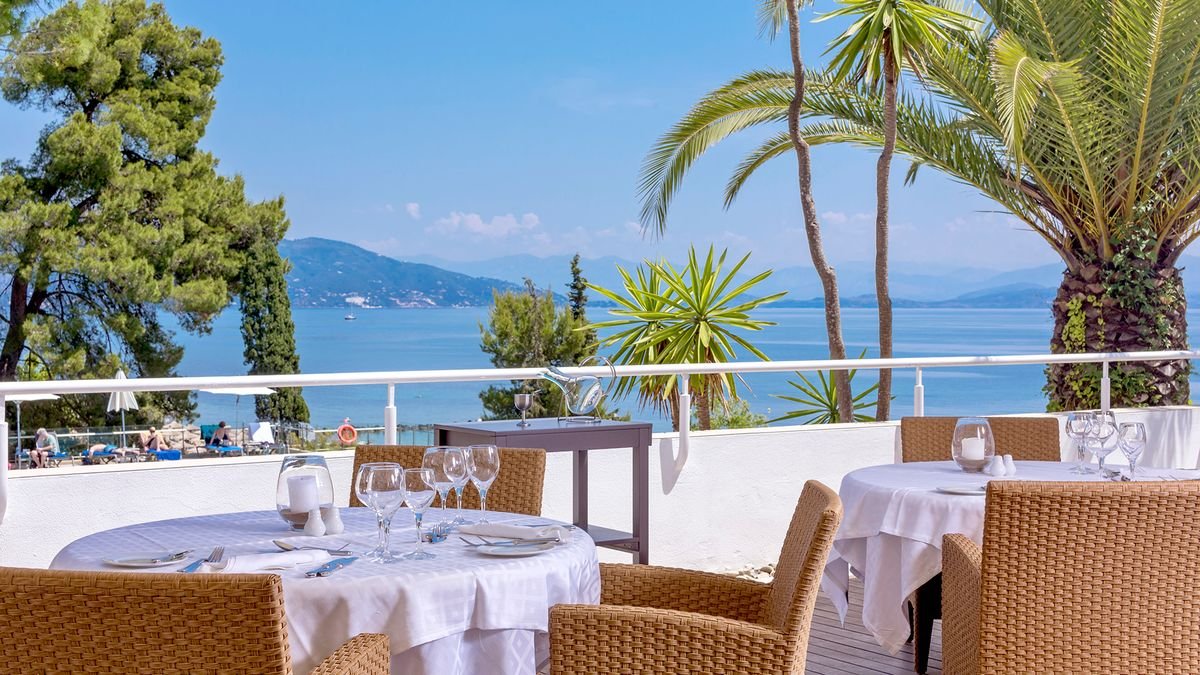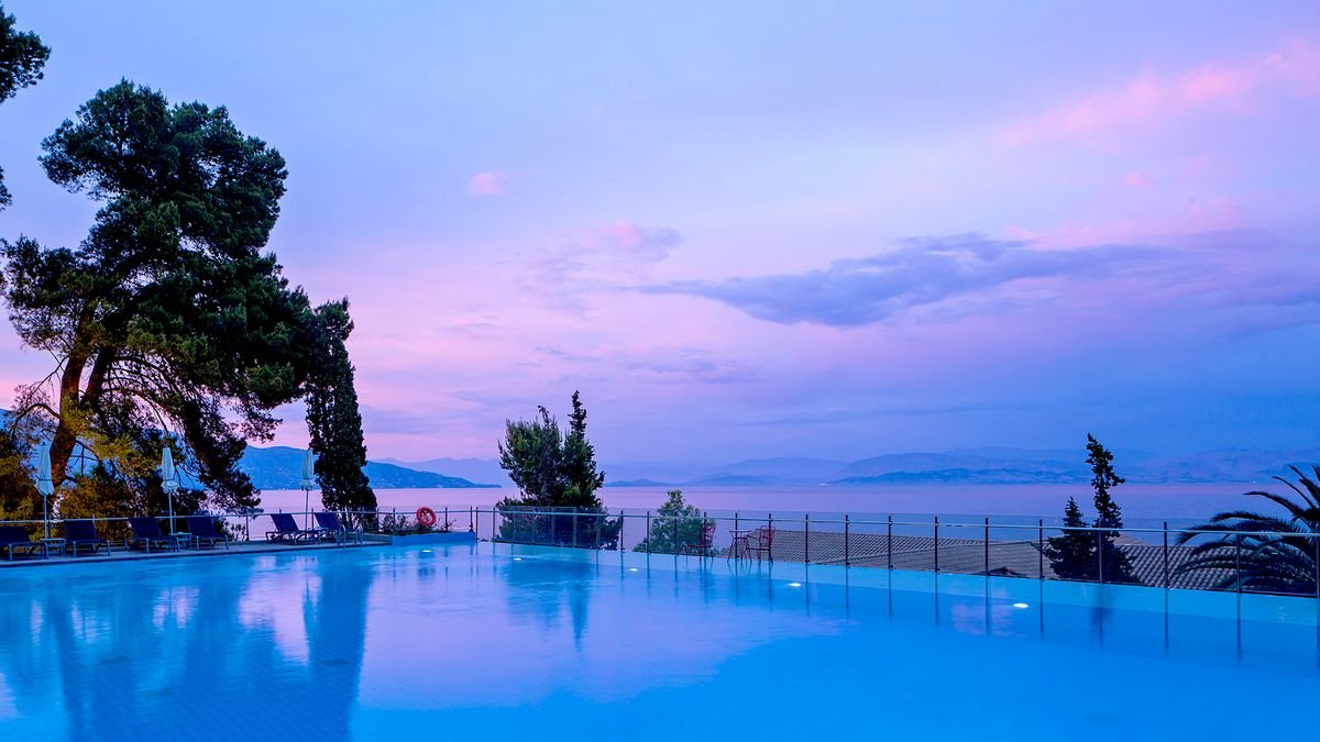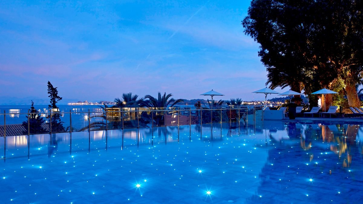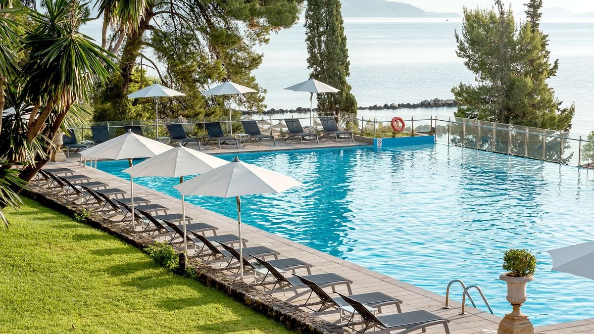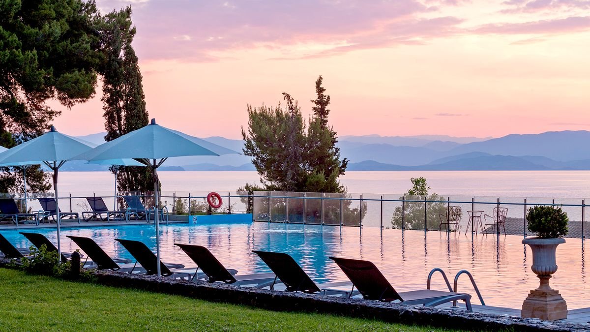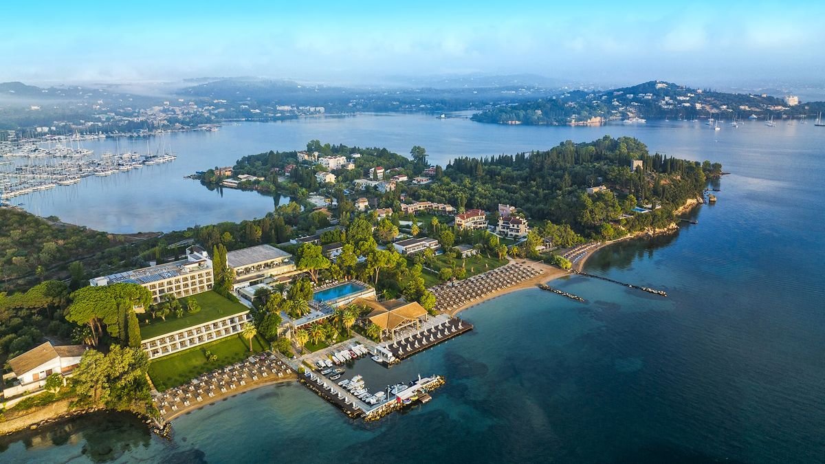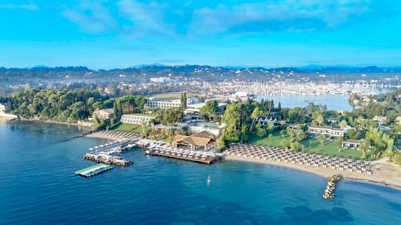 Przepięknie położony na półwyspie oblanym szafirowymi wodami Morza Jońskiego, zanurzony w zieleni cyprysów i pinii. Wspaniałe widoki na góry, marinę Gouvia i morze zachwycą nie tylko romantyków. Hotel jest bardzo zadbany, na każdym kroku widać troskę o najmniejszy szczegół. Profesjonalna obsługa, smaczne posiłki i eleganckie wnętrza zapewniają komfortowy wypoczynek. Ładne pokoje znajdują się w budynku głównym i przyjemnych bungalowach w ogrodzie. Na miejscu wspaniały baseny typu infinity i dobrze wyposażone Spa, idealne miejsce na relaks po dniu pełnym wrażeń.