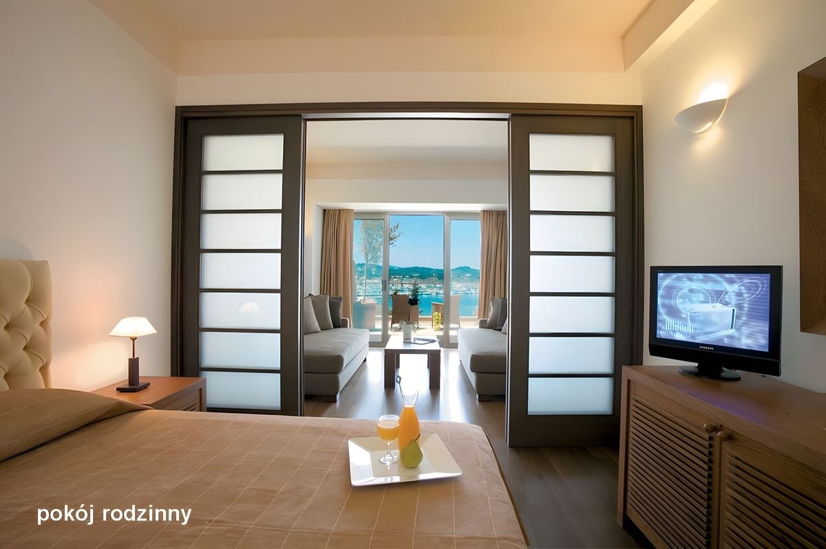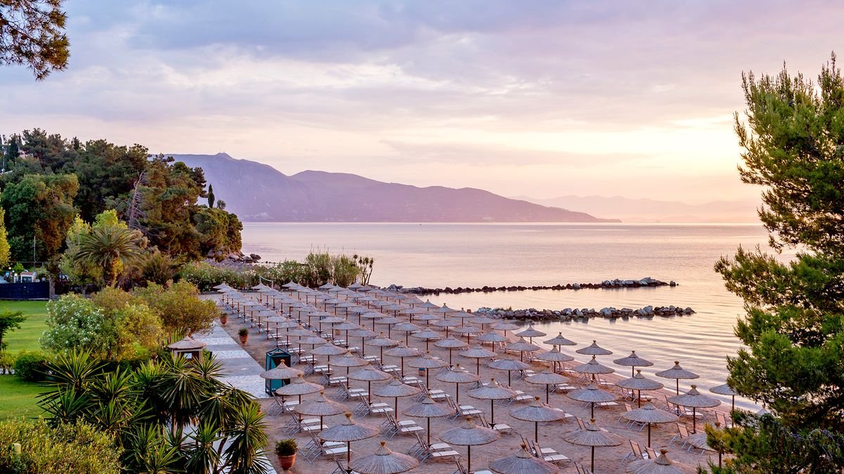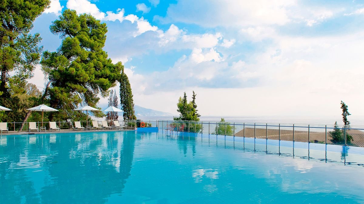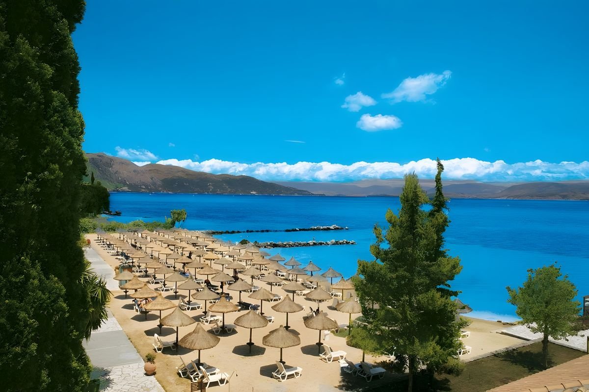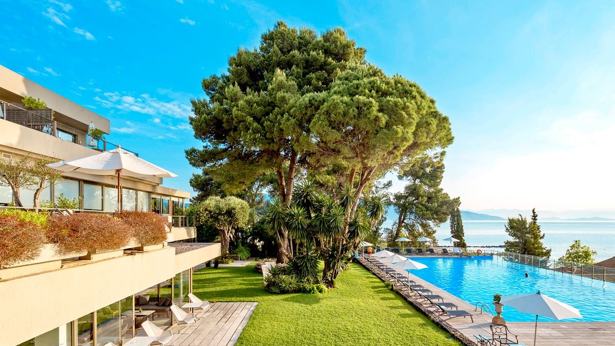 Przepięknie położony na półwyspie oblanym szafirowymi wodami Morza Jońskiego, zanurzony w zieleni cyprysów i pinii. Wspaniałe widoki na góry, marinę Gouvia i morze zachwycą nie tylko romantyków. Hotel jest bardzo zadbany, na każdym kroku widać troskę o najmniejszy szczegół. Profesjonalna obsługa, smaczne posiłki i eleganckie wnętrza zapewniają komfortowy wypoczynek. Ładne pokoje znajdują się w budynku głównym i przyjemnych bungalowach w ogrodzie. Na miejscu wspaniały baseny typu infinity i dobrze wyposażone Spa, idealne miejsce na relaks po dniu pełnym wrażeń.