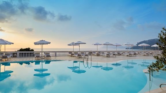 Cudownie położony na klifie z zachwycającym widokiem na morze, tuż przy pięknej, piaszczystej plaży Agios Gordios zaprasza na wyjatkowy urlop we dwoje. Przeznaczony dla dorosłych Gości oferuje wszystko, co potrzebne do beztroskiego wypoczynku – eleganckie, komfortowe pokoje z widokiem na morze oraz szeroki wybór restauracji i barów, w tym na dachu i przy plaży. W hotelu 2 imponująco rozmieszczone baseny z tarasami, szeroka oferta sportowa, centrum spa, animacje, a okazyjnie nawet wieczór grecki! Pozwól sobie na odrobinę luksusu i już dzisiaj zaplanuj urlop na Korfu! To idealna loklizacja na podróż poślubną czy inną okazję wymagającą wyjatkowej oprawy i cudownego klimatu. Zachody slońca są tutaj magiczne!