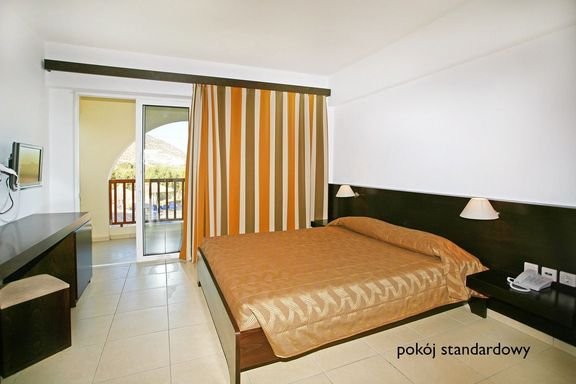 standardowy: 2-os. (możliwość 1 lub 2 dostawek), ok. 28-32 m², indywidualnie sterowana klimatyzacja za kaucją (ok. 20 EUR), łazienka (wanna lub prysznic, wc; suszarka), telewizja satelitarna, polski program, telefon, lodówka; za opłatą: internet bezprzewodowy (ok. 5 EUR/godz.), sejf (ok. 20 EUR/tydz.); bezpłatne łóżeczko dla dziecka do 2 lat na zamówienie; balkon (stolik i krzesełka), widok na basen lub ogród; rodzinny: 2-os. (możliwość 2 lub 3 dostawek), ok. 35-40 m², pokój dzienny i sypialnia, wyposażenie jak w pokoju standardowym; widok na ogród, góry lub basen; pokój z 2 dostawkami i pokój rodzinny za dopłatą.