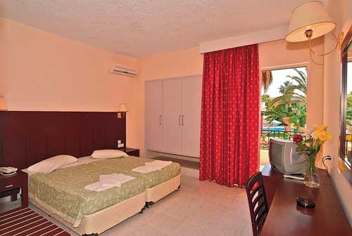 czterogwiazdkowy, greckiej kategorii A, zbudowany w 1989 r., odnowiony w 2008 r.; 170 pokoi, 4 budynki, 2 piętra; przestronny i elegancki hol, całodobowa recepcja, restauracja główna - dania w formie bufetu, kuchnia międzynarodowa, dostępne foteliki i menu dla dzieci, dania wegetariańskie; 2 bary: główny i przy basenie, sala telewizyjna, egzotyczny ogród; za opłatą: punkt Internetowy (ok. 6 EUR/godz.), sejf w recepcji (ok. 16 EUR/tydz.); udogodnienia i pokoje dla niepełnosprawnych; akceptowane karty kredytowe: Visa, Mastercard.