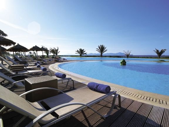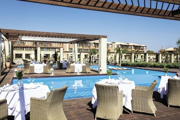 Bardzo nowoczesny, położony w przepięknym, pełnym śródziemnomorskiej roślinności ogrodzie, który prowadzi do prywatnej plaży. Utrzymane w jasnej kolorystyce luksusowe pokoje, niektóre z bezpośrednim zejściem do basenu zachwycą wielbicieli współczesnego designu. Liczne atrakcje hotelowe, możliwość uprawiania sportów i przyjemne animacje sprzyjają aktywnemu wypoczynkowi. Dumą hotelu jest piękny basen zaprojektowany w kształcie laguny. Na najmłodszych czeka miniklub, pokój i plac zabaw oraz ogródek edukacyjny, w którym mogą pielęgnować własnoręcznie posadzone rośliny. Wyśmienite, bardzo urozmaicone posiłki i doskonały serwis sprawiają, że jest to idealne miejsce na udane rodzinne wakacje.