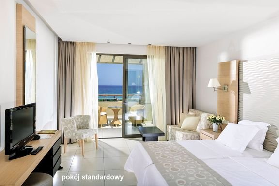 pięciogwiazdkowy, nowoczesny i elegancki, zbudowany w 2009 r., 337 pokoi, kilkanaście połączonych budynków, 2 piętra, 2 windy; przestronny i elegancki hol, całodobowa recepcja; restauracja główna Achilles - dania w formie bufetu, kuchnia międzynarodowa i grecka, dostępne foteliki i menu dla dzieci, dania wegetariańskie, dieta bezglutenowa (na zamówienie 14 dni przed przyjazdem), restauracja Argo na plaży - dania w formie bufetu i à la carte, kuchnia grecka (raz na pobyt bezpłatnie, wymagana wcześniejsza rezerwacja), Grill & Steak House przy basenie - dania w formie bufetu, BBQ; 2 bary: Sirenis Bar w lobby, Dawn Bar przy basenie; centrum konferencyjne dla 250 osób, minimarket, sklep z pamiątkami i kosmetykami, ogród z roślinnością śródziemnomorską, taras z widokiem na ogród i basen, bezpłatny internet bezprzewodowy; akceptowane kartykredytowe: Visa, MasterCard.