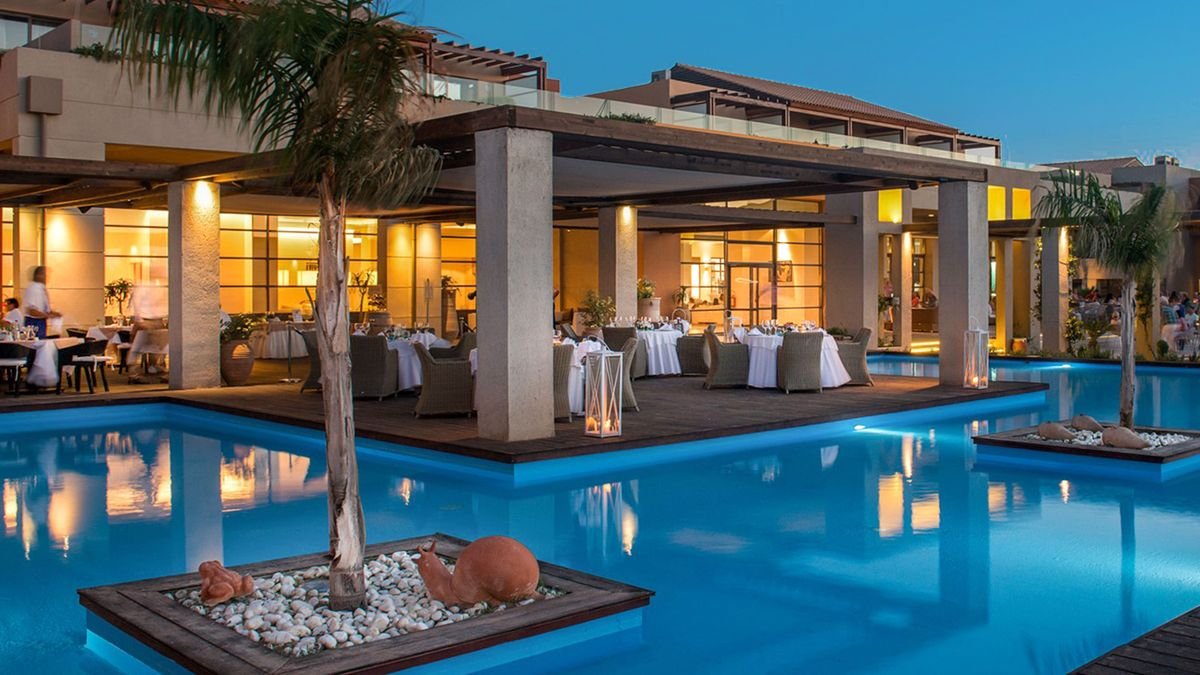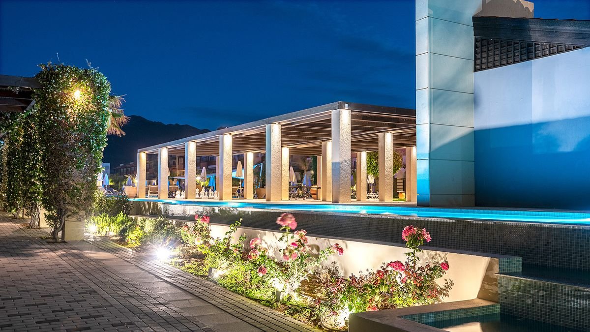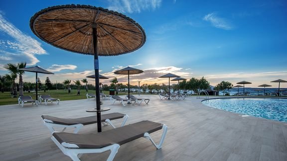Bardzo nowoczesny, położony w przepięknym, pełnym śródziemnomorskiej roślinności ogrodzie, który prowadzi do prywatnej plaży. Utrzymane w jasnej kolorystyce luksusowe pokoje, zachwycą wielbicieli współczesnego dizajnu. Liczne atrakcje hotelowe, możliwość uprawiania sportów i przyjemne animacje sprzyjają aktywnemu wypoczynkowi. Dumą hotelu jest piękny basen zaprojektowany w kształcie laguny. Na najmłodszych czeka miniklub, pokój i plac zabaw oraz ogródek edukacyjny, w którym mogą pielęgnować własnoręcznie posadzone rośliny. Wyśmienite, bardzo urozmaicone posiłki i doskonały serwis sprawiają, że jest to idealne miejsce na udane rodzinne wakacje.