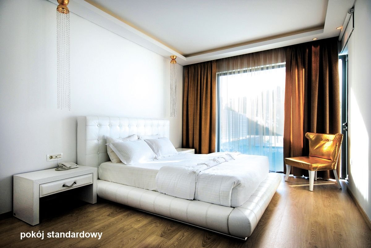 standardowy: 2-os., ok. 30-34 m², nowoczesny i elegancki, indywidualnie sterowana klimatyzacja, łazienka (wanna z hydromasażem lub prysznic jet shower, wc; suszarka, szlafroki, kapcie, kosmetyki), przyłącze internetowe, telewizja satelitarna LCD, komputer, telefon, lodówka, zestaw do kawy/herbaty, sejf; balkon (stolik i krzesełka); superior: 2-os. (możliwość 1 dostawki), ok. 32-36 m², luksusowy, łazienka (wanna lub prysznic, wc; suszarka), część dzienna z sofą i sypialna; wyposażenie jak w pokoju standardowym; superior front pool: wyposażenie jak w superior, dodatkowo taras, bezpośredni dostęp do basenu; pokoje superior i superior front pool za dopłatą, na zamówienie.