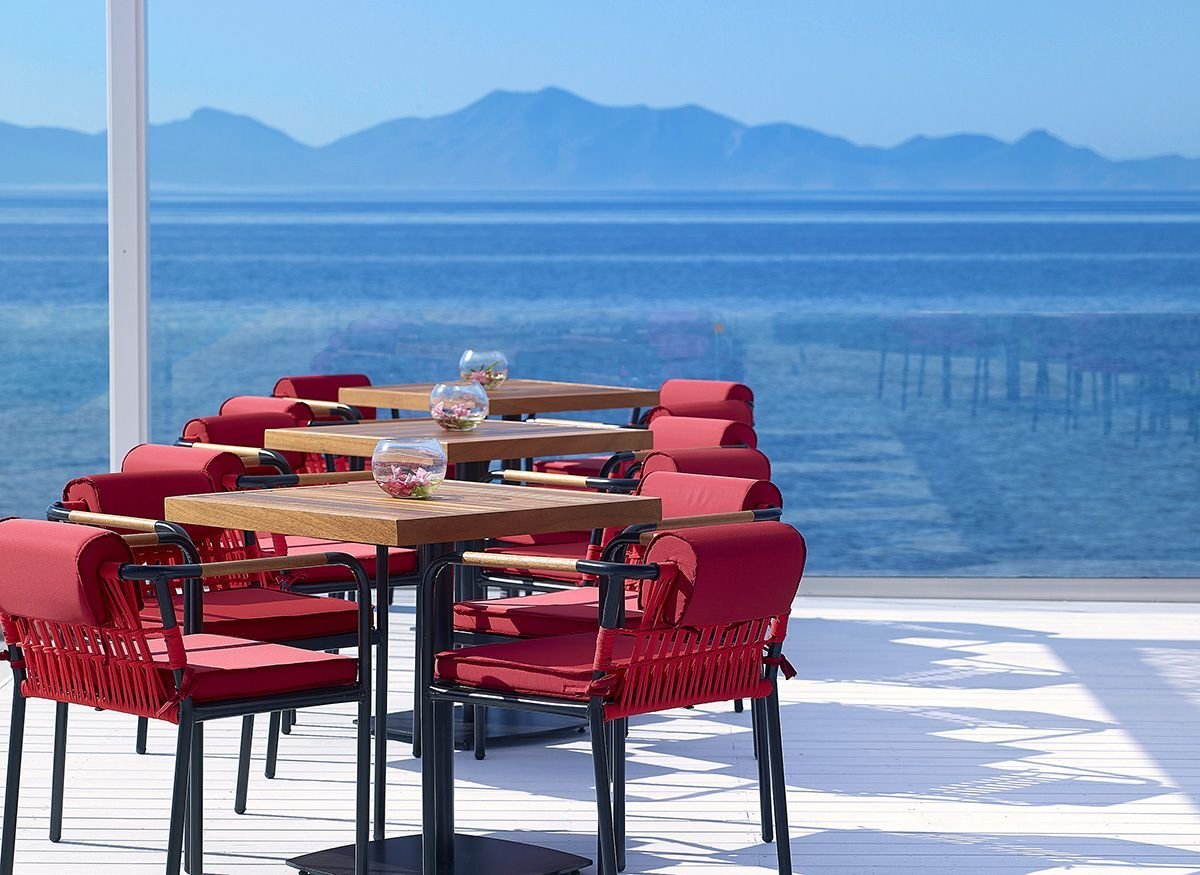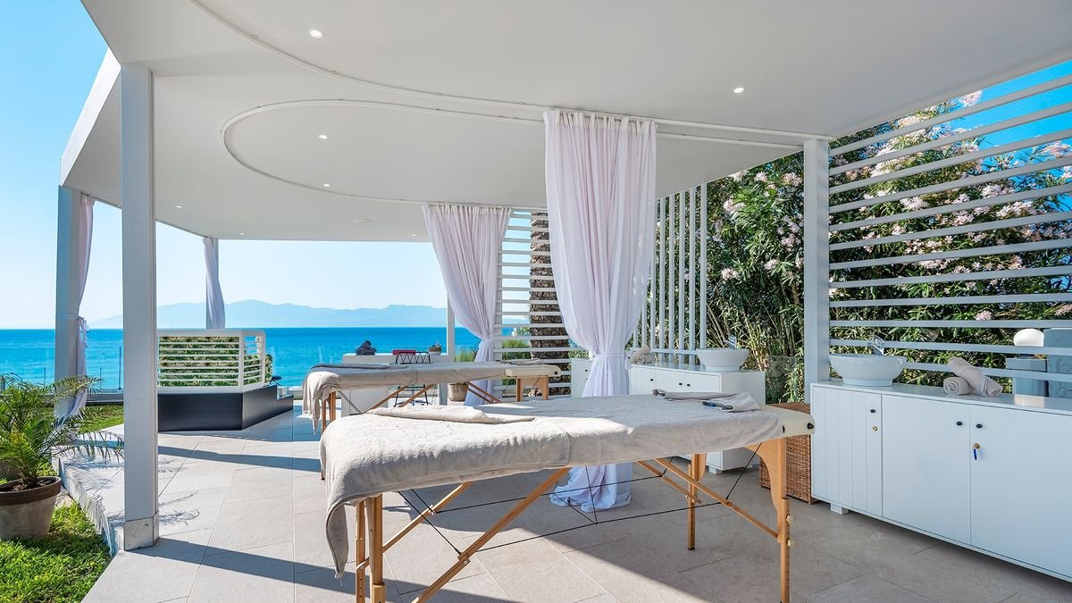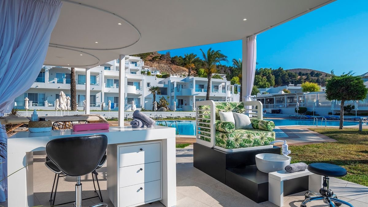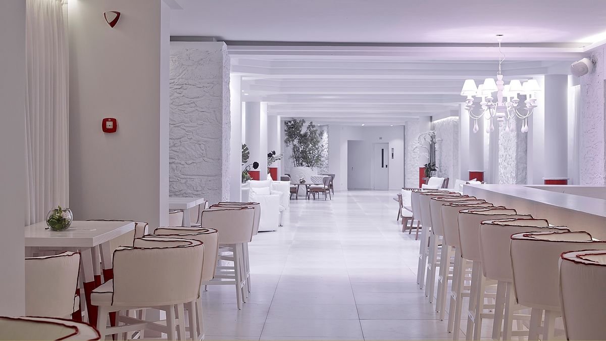 pięciogwiazdkowy, zadbany, zbudowany w 1974 r., odnowiony zimą 2019/2020, 256 pokoi, budynek główny, 5 budynków bocznych, 2 piętra, 83 bungalowy parterowe, winda, lobby, całodobowa recepcja, restauracja główna Flavors – dania w formie bufetu, 2 restauracje à la carte: Thalasa & Alati – kuchnia grecka, Cucina – kuchnia włoska, w restauracjach dostępne foteliki dla dzieci i dania wegetariańskie, show cooking podczas kolacji (wymagana wcześniejsza rezerwacja), podczas kolacji wymagany strój formalny (panowie – długie spodnie), 6 barów: snack bar Thalasa & Alati, pool bar Water – swim-up, Veranda – w lobby, Thallasa Lounge – przy basenie relaksacyjnym, White Lounge – tylko dla dorosłych; minimarket, sala telewizyjna, biblioteczka; taras z widokiem na Morze Egejskie, bezpłatny internet bezprzewodowy na terenie hotelu; za opłatą: opiekunka do dziecka od 3 lat (na zamówienie), usługi pralnicze; występują różnice poziomów – hotel nie jest polecany osobom z ograniczeniami ruchowymi; akceptowane karty kredytowe: Visa, MasterCard, Maestro.