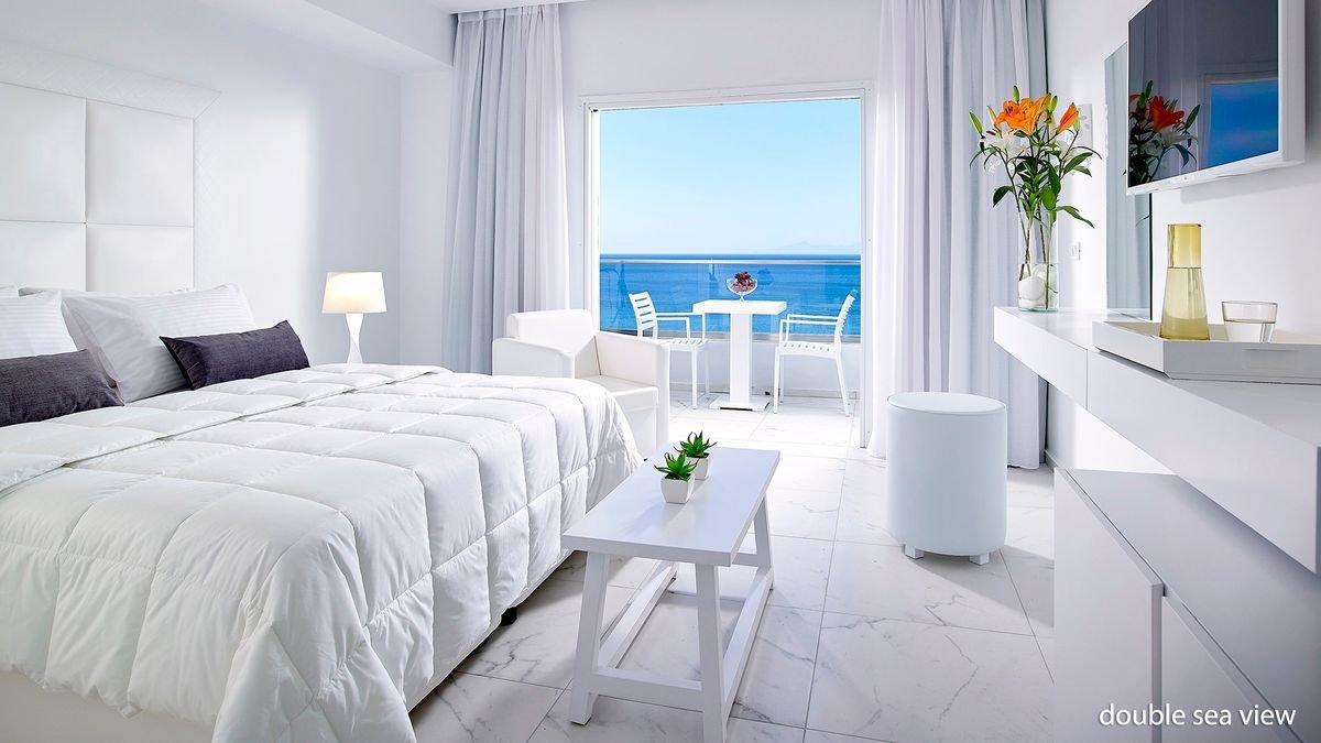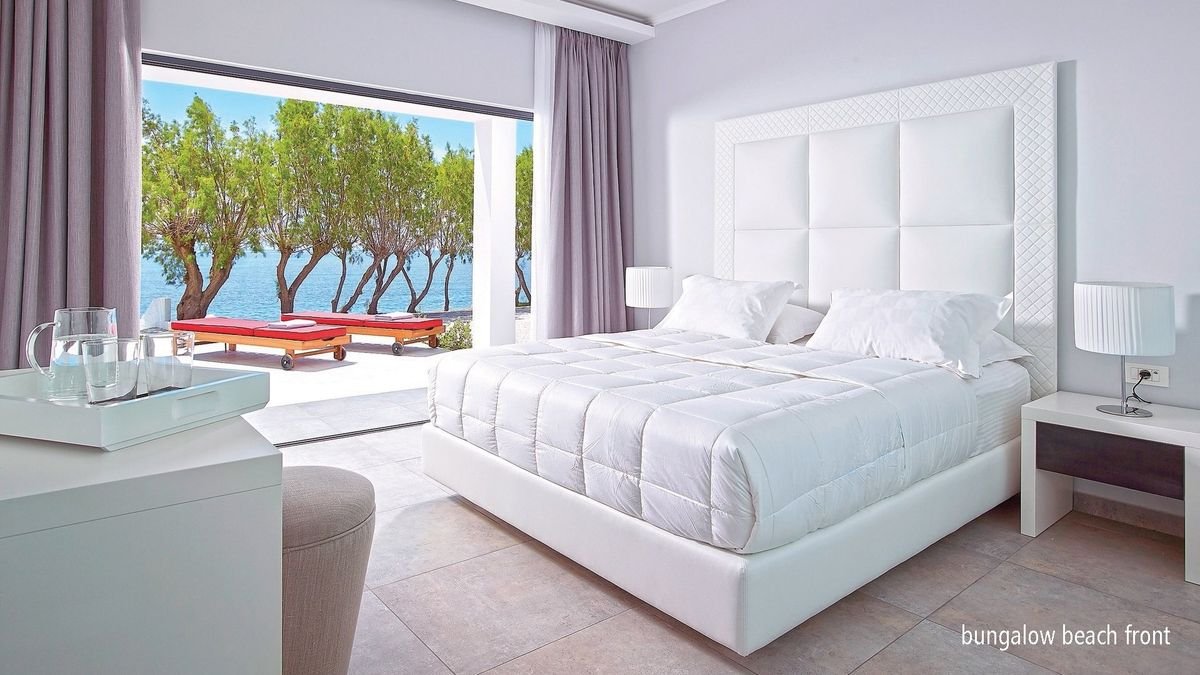 double sea view: 2-os., ok. 23 m², elegancki, w jasnej kolorystyce, indywidualnie sterowana klimatyzacja, łazienka (prysznic, wc; suszarka), telewizja satelitarna, telefon, lodówka, sejf, zestaw do kawy/herbaty, szlafroki i kapcie, bezpłatny internet bezprzewodowy; balkon (stolik i krzesełka), widok na morze; deluxe family suite: 3-os. (możliwość 1 dostawki), ok. 45 m², 2 sypialnie, wyposażenie jak w pokoju double sea view; bezpłatne łóżeczko dla dziecka do 2 lat na zamówienie przed przyjazdem; widok na morze; pokój deluxe family suite na zamówienie, za dopłatą; deluxe junior suite: 2-os. (możliwość 1 dostawki), ok. 35 m², wyposażenie jak w pokoju double sea view; dodatkowo kawiarka do espresso; bungalow garden view: 2- os. (możliwość 1 dostawki), ok. 33 m², w bungalowie, wyposażenie jak w pokoju double sea view, widok na morze za dopłatą; bungalow beach front: 2-os., ok. 23 m², w bungalowie, wyposażenie jak w pokoju double sea view, przy plaży, z tarasem z prywatnymi leżakami; pokój bungalow beach front na zapytanie, za dopłatą.