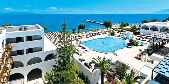 Jedyny w swoim rodzaju, stylowo zaprojektowany hotel, raj dla kochających morze i słońce. Rewelacyjnie położony w egzotycznym ogrodzie, który naturalnie łączy się z hotelową plażą, przypomina wyglądem wakacyjną widokówkę. Utrzymane w tradycyjnej kolorystyce białe domki na tle błękitnych basenów to idealne miejsce na relaks we dwoje. Dużym atutem hotelu są odnowione w 2011 r. eleganckie pokoje, również z prywatnymi basenami, klimatyczne restauracje i na koniec dnia relaksujące zabiegi w Euphoria Spa – zapewniające równowagę ciała i ducha. Łatwo się stąd dostać do pełnego turystycznych atrakcji miasta Kos i znanych na całej wyspie gorących źródeł – Term.