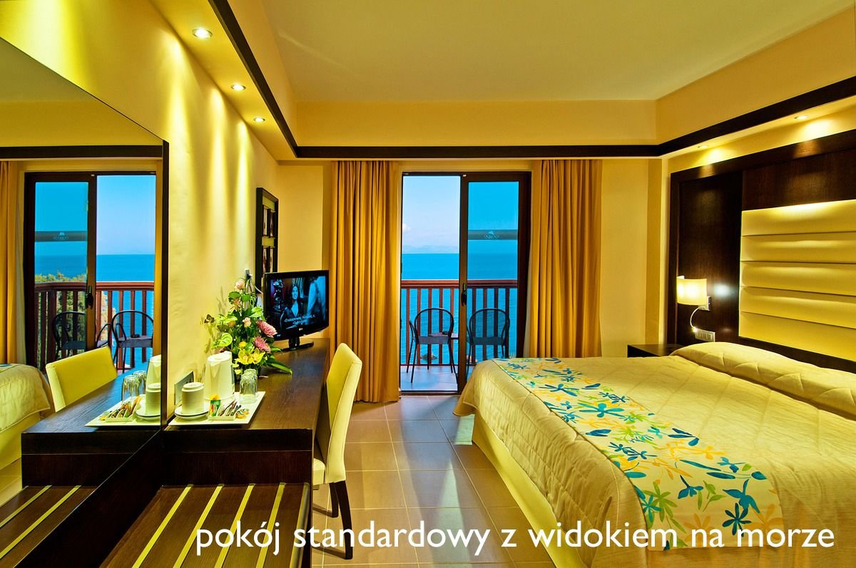 czterogwiazdkowy o podwyższonym standardzie, elegancki i stylowy, zbudowany w 1984 r., całkowicie odnowiony w 2011 r., 382 pokoje, 3 budynki, 4 piętra, 4 windy, przestronne i eleganckie lobby, całodobowa recepcja, restauracje – dania w formie bufetu, obsługa kelnerska: Yacht Club z tarasem i widokiem na morze, kuchnia międzynarodowa, wieczory tematyczne, Taverna Meltemi – kuchnia międzynarodowa, Hippocampus – à la carte, obsługa kelnerska, kuchnia włoska; w restauracjach dostępne dania wegetariańskie, podczas kolacji obowiązuje formalny strój (panowie – długie spodnie); bary: Apollo przy recepcji, Aquarius przy basenie, Greco Cafe, Anemos przy plaży, kantor, minimarket: artykuły spożywcze, kosmetyki, pamiątki, prasa; taras z widokiem na morze i basen, ogród; za opłatą: internet bezprzewodowy (ok. 5 EUR/godz.), punkt internetowy (ok. 5 EUR/godz.), room-service (8.00-23.00), wypożyczalnia rowerów, pralnia; występują różnice poziomów – niepolecany osobom z ograniczeniami ruchowymi; hotel przyjmuje Gości powyżej 17. roku życia; akceptowane karty kredytowe: Visa, MasterCard, American Express.