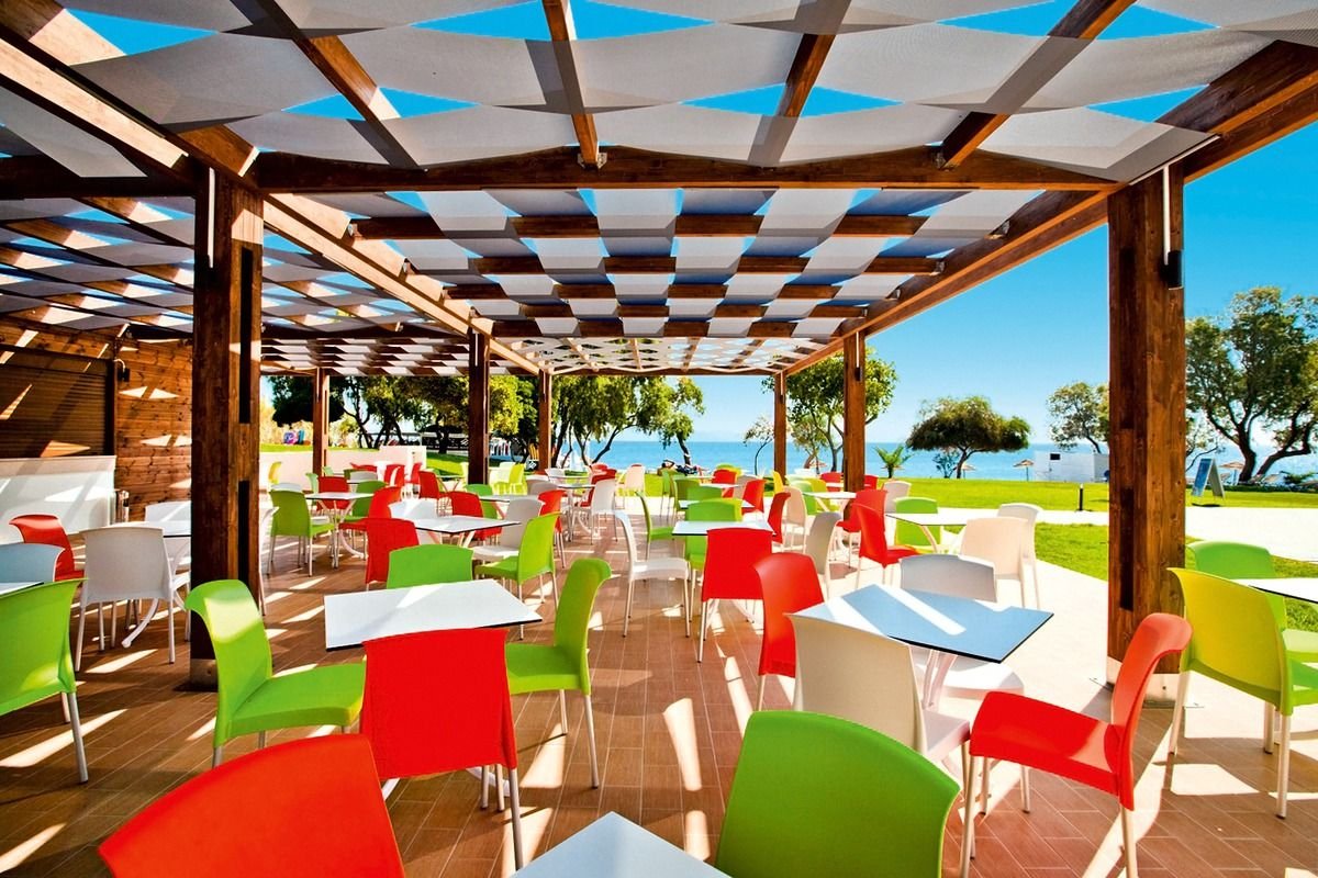 śniadanie (7.00-10.00), kolacja (18.30-21.30) w formie bufetu w restauracji Yacht Club, późne śniadanie (10.00-12.00), obiad (12.30-14.30) w Tavernie Meltemi; przekąski w Greco Cafe (13.00-15.00, 15.00-18.00); napoje bezalkoholowe (7.00-24.00) i lokalne napoje alkoholowe (10.00-24.00) w wyznaczonych restauracjach i barach; raz na pobyt kolacja w restauracji à la carte (wymagana rezerwacja, wino dodatkowo płatne).