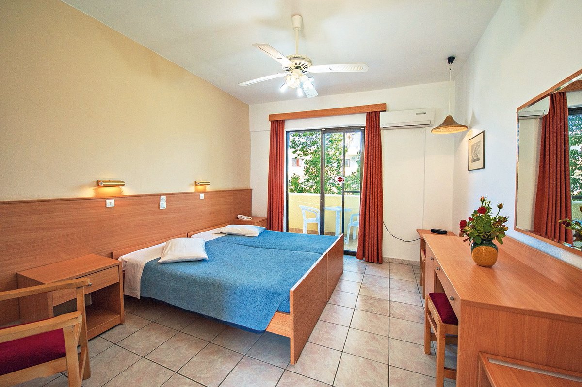 trzygwiazdkowy, zbudowany w 1989 i 2005 r., odnowiony w 2013 r., 212 pokoi, budynek główny i kilka budynków bocznych, 1-3 piętra, przestronne lobby, całodobowa recepcja, restauracja – dania w formie bufetu, kuchnia międzynarodowa, dostępne foteliki dla dzieci, 2 bary, w tym przy basenie; taras, bezpłatny internet bezprzewodowy w lobby; za opłatą: sejf (ok. 15 EUR/tydz.); akceptowane karty kredytowe: Visa, MasterCard.