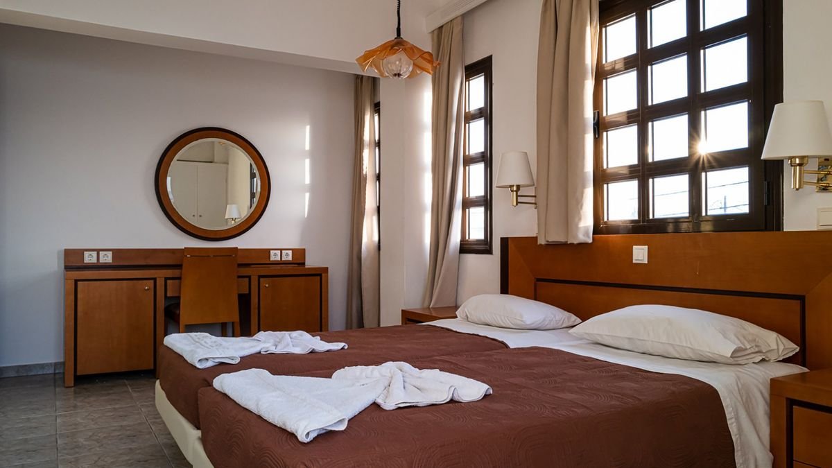 Kameralny, położony w spokojnej okolicy przy ładnej, piaszczystej plaży, zaledwie kilka kroków od morza jest propozycją na rodzinny urlop lub wakacje ze znajomymi. Oferuje skromne, ale zadbane pokoje, wyposażone w bezpłatny dostęp do internetu, a także bar serwujący smaczne śniadania. Warto wybrać się do centrum Marmari ze sklepami, barami i tawernami, gdzie można spróbować słynnych greckich specjałów.