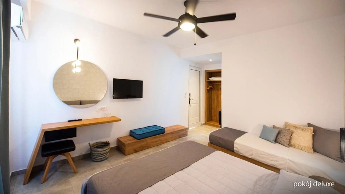 Greckie wakacje w kameralnej atmosferze? Dlaczego nie! Malownicze otoczenie, zielony ogród, basen i nowocześnie urządzone pokoje – to największe atuty hotelu. Przygotowany z myślą o dorosłych, oferuje bary i restaurację serwującą dania kuchni greckiej i międzynarodowej, a fantastyczna piaszczysta plaża Marmari z wydmami znajdująca się w odległości kilkuminutowego spaceru od hotelu jest idealnym miejscem na błogi relaks w promieniach greckiego słońca.