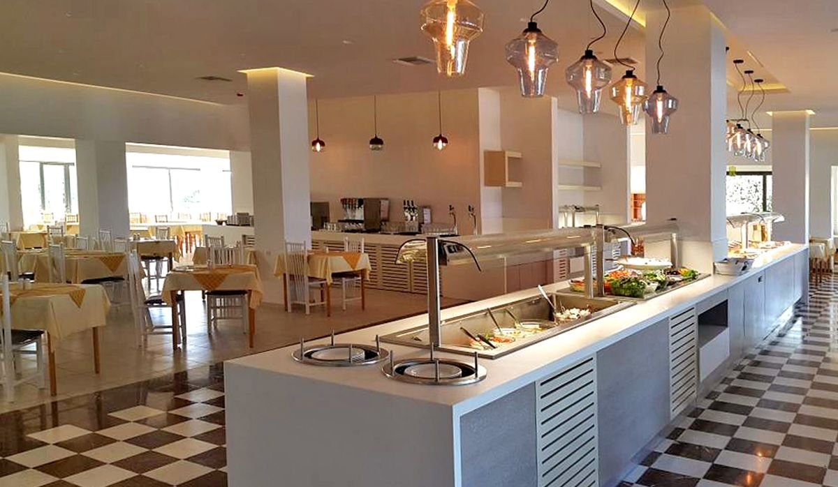 śniadanie (7.00-9.45), obiad (12.30-14.00), kolacja (18.30-21.00) w formie bufetu w restauracji; późne śniadanie kontynentalne w snack barze (10.00-11.30); podwieczorek w snack barze (16.30-17.30); napoje bezalkoholowe oraz lokalne piwo i wino w barach (10.00-23.00), lokalne mocne napoje alkoholowe w wyznaczonym barze (18.00-23.00).