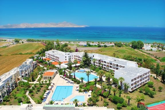 w dzielnicy hotelowej, ok. 250 m od centrum TIGAKI ze sklepami i barami, ok. 12 km od miasta Kos, przy drodze lokalnej; ok. 15 km od portu lotniczego w Kos; przystanek autobusowy ok. 100 m od hotelu (ok. 2,10 EUR/Kos).