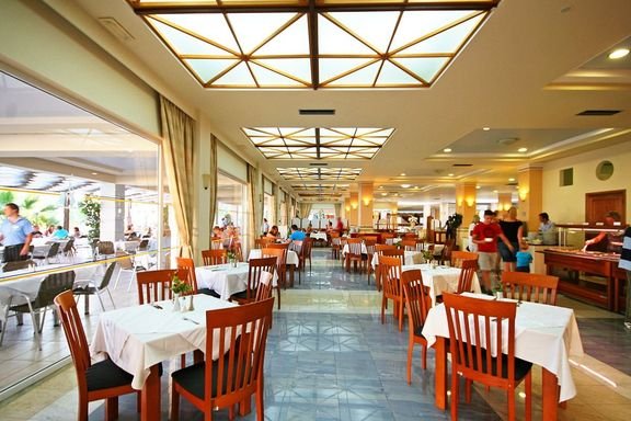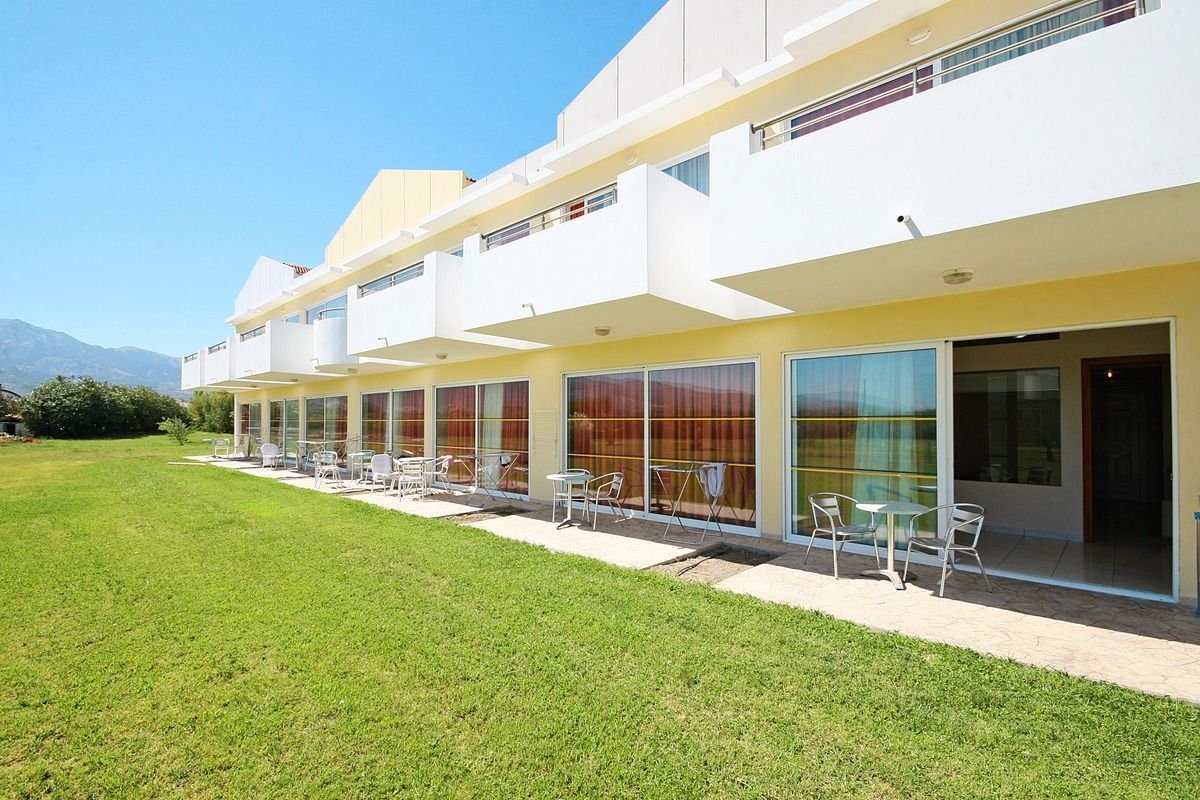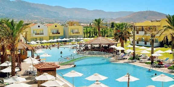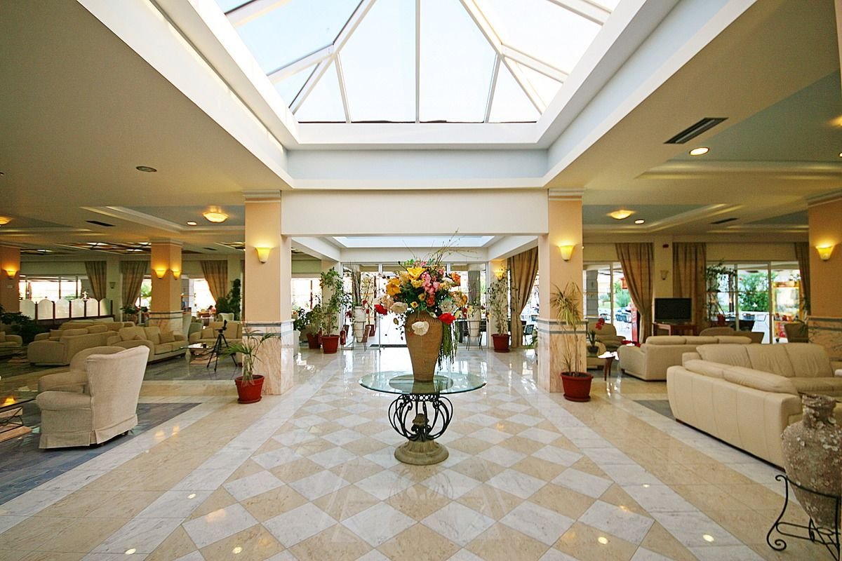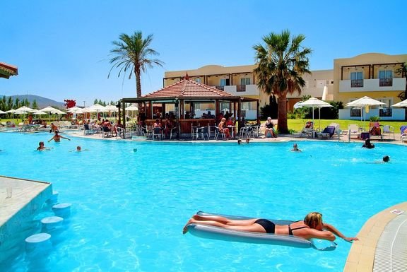 czterogwiazdkowy, nowoczesny, zbudowany w 2002 r., 204 pokoje, jednopiętrowy budynek i kilkanaście bungalowów, przestronne lobby, całodobowa recepcja, 2 restauracje: główna – dania w formie bufetu, kuchnia międzynarodowa i grecka, dostępne foteliki i menu dla dzieci, dania wegetariańskie, Taverna – à la carte, kuchnia grecka i włoska, dostępne foteliki dla dzieci, 3 bary: lobby-bar i 2 bary przy basenie; sklep z pamiątkami, minimarket, sklep z kosmetykami; taras z widokiem na basen; bezpłatny internet bezprzewodowy w lobby; za opłatą: punkt internetowy (ok. 2 EUR/30 min); akceptowane karty kredytowe: Visa, MasterCard.