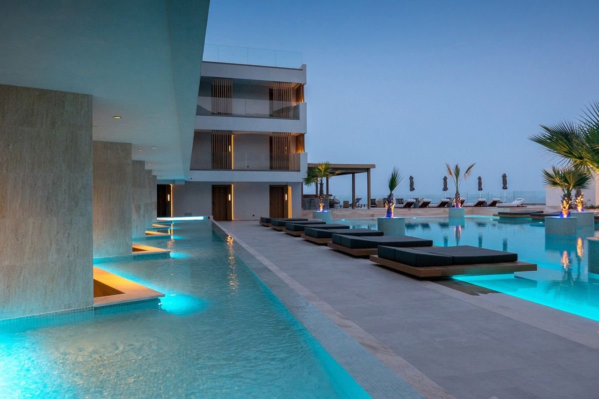 Luksusowe wakacje na słonecznej Krecie? Czemu nie! Zatrzymaj się w nowoczesnym hotelu położonym blisko plaży z wydzieloną częścią hotelową i ciesz się pięknem wybrzeża, które widoczne jest tu na każdym kroku. Dni rozpoczynaj od pysznego śniadania w restauracji, a później oddaj się beztroskiemu relaksowi – możesz popływać w jednym z 3 basenów, odpocząć na leżaku popijając schłodzonego drinka lub odprężyć się podczas ulubionego zabiegu w spa. Aktywni z pewnością docenią dobrze wyposażone centrum fitness, a fani adrenaliny chętnie skorzystają z oferty sportów wodnych na plaży. Dodając do tego przestronne i stylowe pokoje, w tym z widokiem na morze i jacuzzi oraz świetną obsługę otrzymujemy miejsce na urlop marzeń!