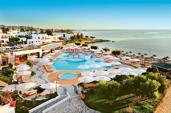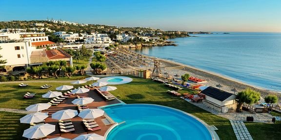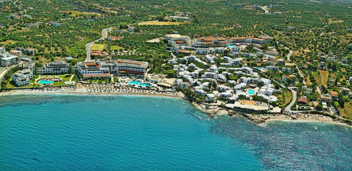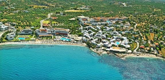 Wakacyjny resort urządzony w tradycyjnym kreteńskim stylu z niskimi białymi budynkami, zatopionymi w ogrodzie. Atrakcyjnie położony tuż przy plaży, niedaleko tętniącego życiem centrum. Doskonały na beztroski rodzinny wypoczynek – w hotelu jest m.in. 6 basenów, miniklub i wyjątkowo bogaty program animacji. Pozytywne opinie zyskał również dzięki eleganckiemu centrum spa i przyjemnie zaaranżowanym restauracjom i barom serwującym znakomitą kuchnię na bazie starannie dobranych produktów. Hotel prowadzi politykę proekologiczną i został wyróżniony certyfikatami świadczącymi o poszanowaniu środowiska.