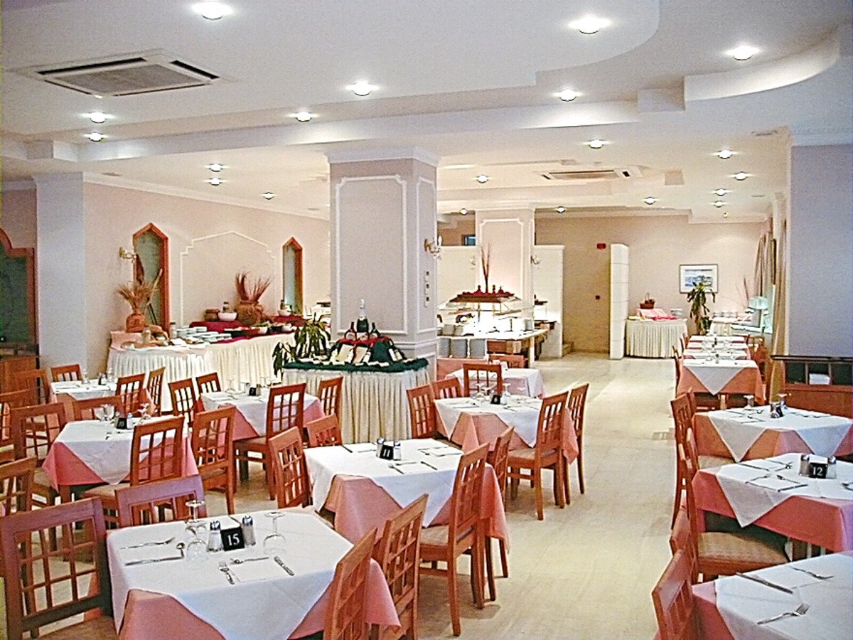 czterogwiazdkowy, ostatnia renowacja w 2007 r., 164 pokoje, budynek główny i 2 budynki boczne, 2 piętra, 2 windy, przestronne i eleganckie lobby, całodobowa recepcja, restauracja główna – dania w formie bufetu, dostępne foteliki dla dzieci, dania wegetariańskie (podczas kolacji wymagany strój formalny – panowie długie spodnie), bar główny w lobby, snack bar, bar przy basenie; kącik telewizyjny, minimarket; nieduży ogród, bezpłatny internet bezprzewodowy w recepcji; za opłatą: punkt internetowy (ok. 3,5 EUR/godz.), akceptowane karty kredytowe: Visa, MasterCard, American Express.