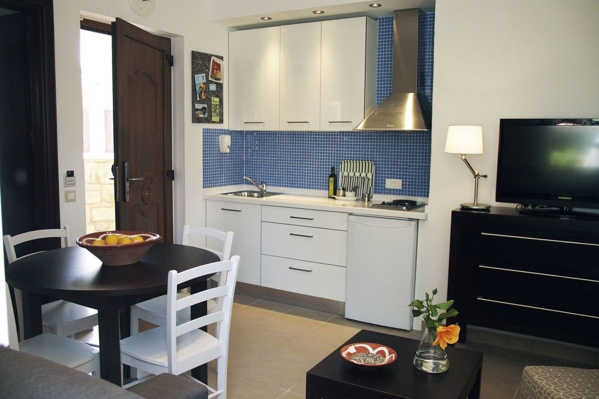 studio: 2-os. (możliwość 1 dostawki), ok. 25 m2, indywidualnie sterowana klimatyzacja, wyposażony aneks kuchenny, łazienka (wanna lub prysznic, wc; suszarka), internet bezprzewodowy, telewizja satelitarna, sejf, telefon, zestaw do kawy/herbaty; balkon (stolik i krzesełka), widok na ogród lub basen; apartament z 1 sypialnią: 2-os. (możliwość 2 dostawek), ok. 35 m2, indywidualnie sterowana klimatyzacja, optycznie wydzielona sypialnia, wyposażony aneks kuchenny, łazienka (wanna lub prysznic, wc; suszarka), wyposażenie jak w studio; balkon (stolik i krzesełka), widok na ogród lub basen; apartament z 1 sypialnią i widok na morze za dopłatą; apartament z 2 sypialniami: 4-os. (możliwość 1 dostawki), ok. 45 m2, indywidualnie sterowana klimatyzacja, optycznie wydzielona sypialnia, wyposażony aneks kuchenny, łazienka (wanna lub prysznic, wc; suszarka), wyposażenie jak w studio; balkon (stolik i krzesełka), widok na ogród lub basen; apartament z 2 sypialniami i widok na morze za dopłatą.