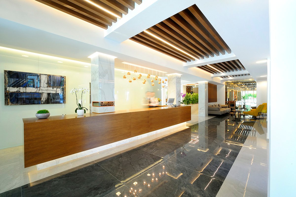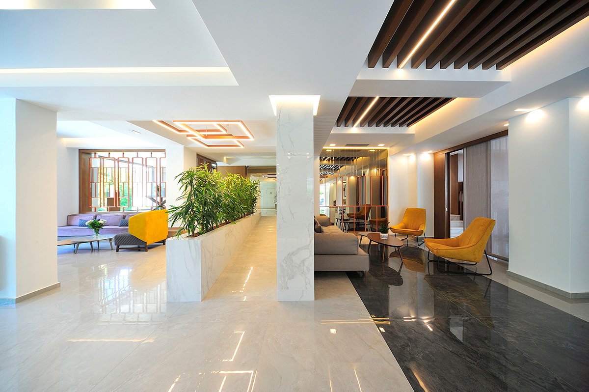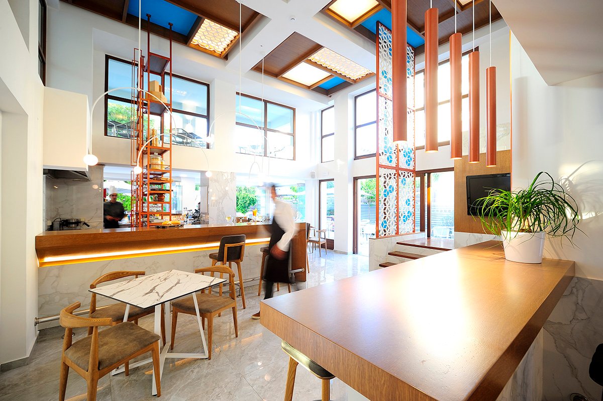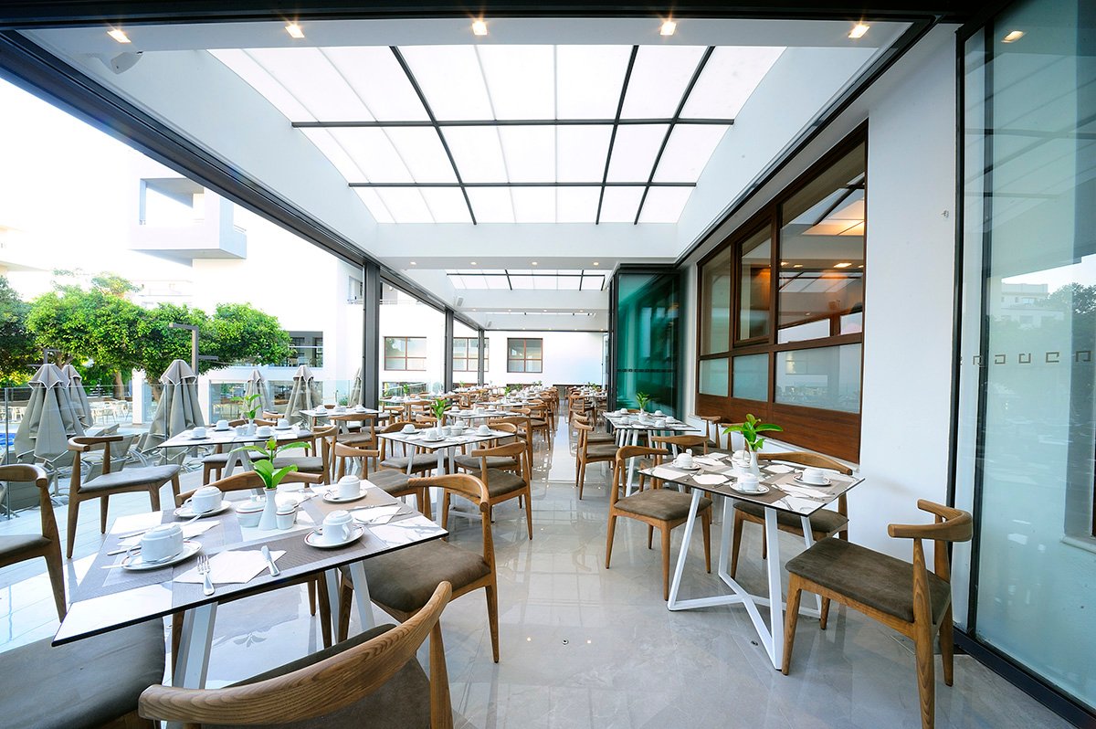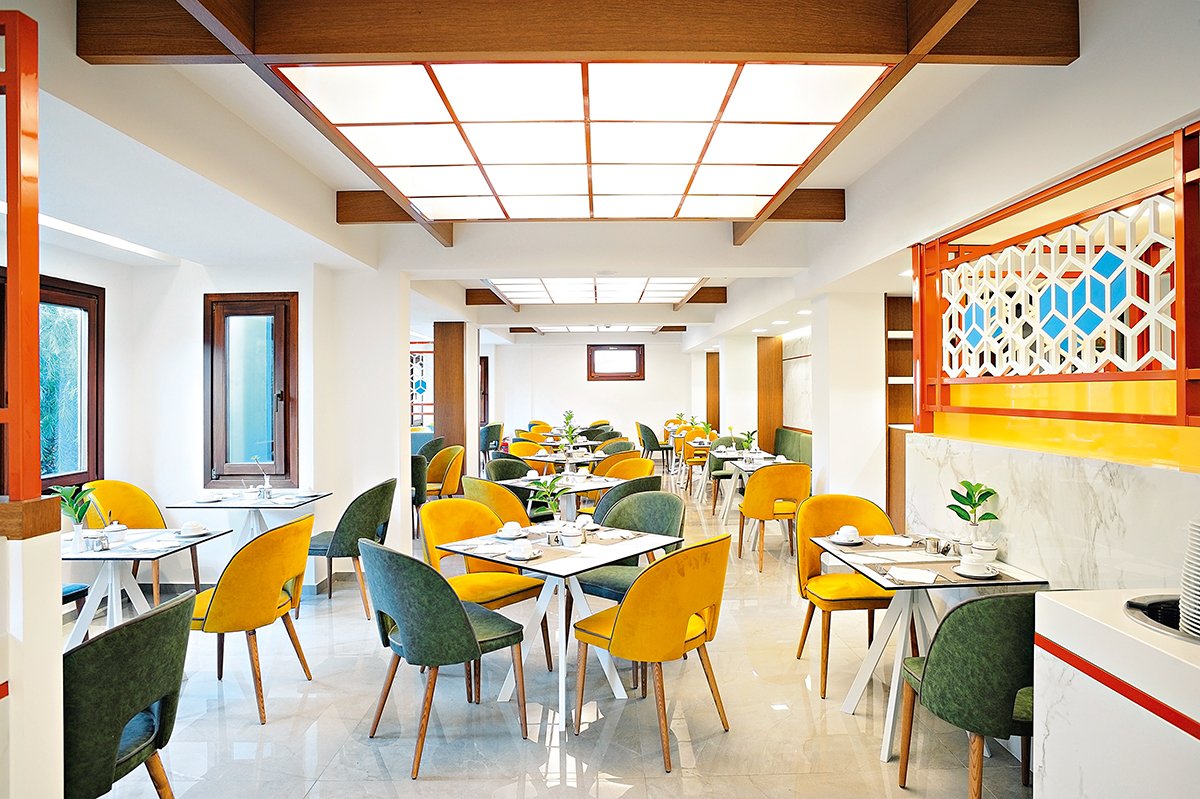 czterogwiazdkowy, elegancki i stylowy, zbudowany w 1997 r., odnowiony w 2017 r., 130 pokoi, 1 budynek, 3 piętra, 3 windy, przestronny i elegancki hol, całodobowa recepcja, 2 restauracje: Oinos z widokiem na basen – dania w formie bufetu, kuchnia międzynarodowa, dostępne dania wegetariańskie, gluten free, Green & Grill – á la carte, lokalne specjały, kuchnia śródziemnomorska, dostępne dania wegetariańskie, 2 bary: Aqua przy basenie, Ginger Coctail Bar przy basenie; kantor; sala konferencyjna dla 50 osób, taras z widokiem na basen, bezpłatny internet bezprzewodowy, punkt internetowy; za opłatą: room-service, fryzjer; udogodnienia dla osób z niepełnosprawnościami; akceptowane karty kredytowe: MasterCard, American Express, Diners Club; hotel przyjmuje gości powyżej 18. roku życia.