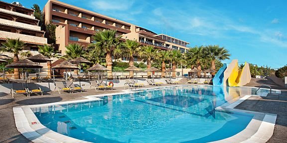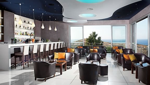 czterogwiazdkowy, elegancki i zadbany, zbudowany w 1989 r., generalny remont w 2015 r., 209 pokoi, budynek główny i budynki aneks, 2 windy, eleganckie lobby, całodobowa recepcja, restauracja Amvrosia – dania w formie bufetu, kuchnia grecka i międzynarodowa, restauracja Panorama (płatna) – obsługa kelnerska, à la carte, kuchnia grecka i międzynarodowa (czynna: czerwiec-wrzesień, 19.00-22.00), wymagany odpowiedni strój (panowie – długie spodnie); w restauracjach dostępne foteliki i menu dla dzieci, dania wegetariańskie; bar Dionyssos, bary przy basenie: Breeze i Pergola; kantor; sala konferencyjna dla 90 osób, taras z widokiem na morze, bezpłatny internet bezprzewodowy w lobby; za opłatą: opiekunka do dziecka (na zamówienie); lekarz (na wezwanie); wypożyczalnia samochodów i rowerów; występują różnice poziomów; akceptowane karty kredytowe: Visa, MasterCard, American Express.
