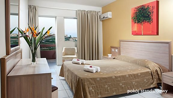 Położony na północnym wybrzeżu wyspy, w malowniczym kurorcie z prawdziwie greckim klimatem, z widokiem na Monanaftis – jedną z najpiękniejszych zatok na wyspie. To elegancki hotel, który łączy wysokiej jakości serwis z tradycyjną kreteńską gościnnością. Szczególnie dobrze będą się tutaj czuć rodziny, dla których przygotowano wygodne pokoje i mnóstwo atrakcji – zdecydowanie największą jest kompleks basenów i aż dwa baseny dla dzieci ze zjeżdżalniami i sympatycznym delfinem oraz doskonale zorganizowany miniklub. Krótki transfer z lotniska i takie atrakcje turystyczne w pobliżu jak Heraklion i słynne Knossos sprawiają, że hotel jest również doskonałym wyborem dla wszystkich, którzy chcą zwiedzić najważniejsze miejsca na wyspie.