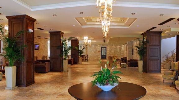 •pięciogwiazdkowy•stylowy i elegancki•zbudowany w 2009 r.•177 pokoi, budynek główny i 6 bocznych, 2 piętra, 2 windy•przestronne i eleganckie lobby•całodobowa recepcja