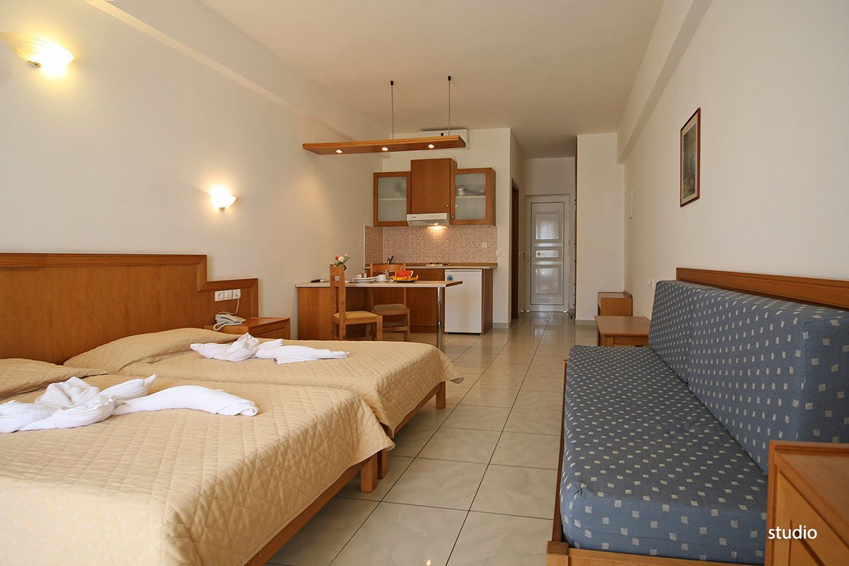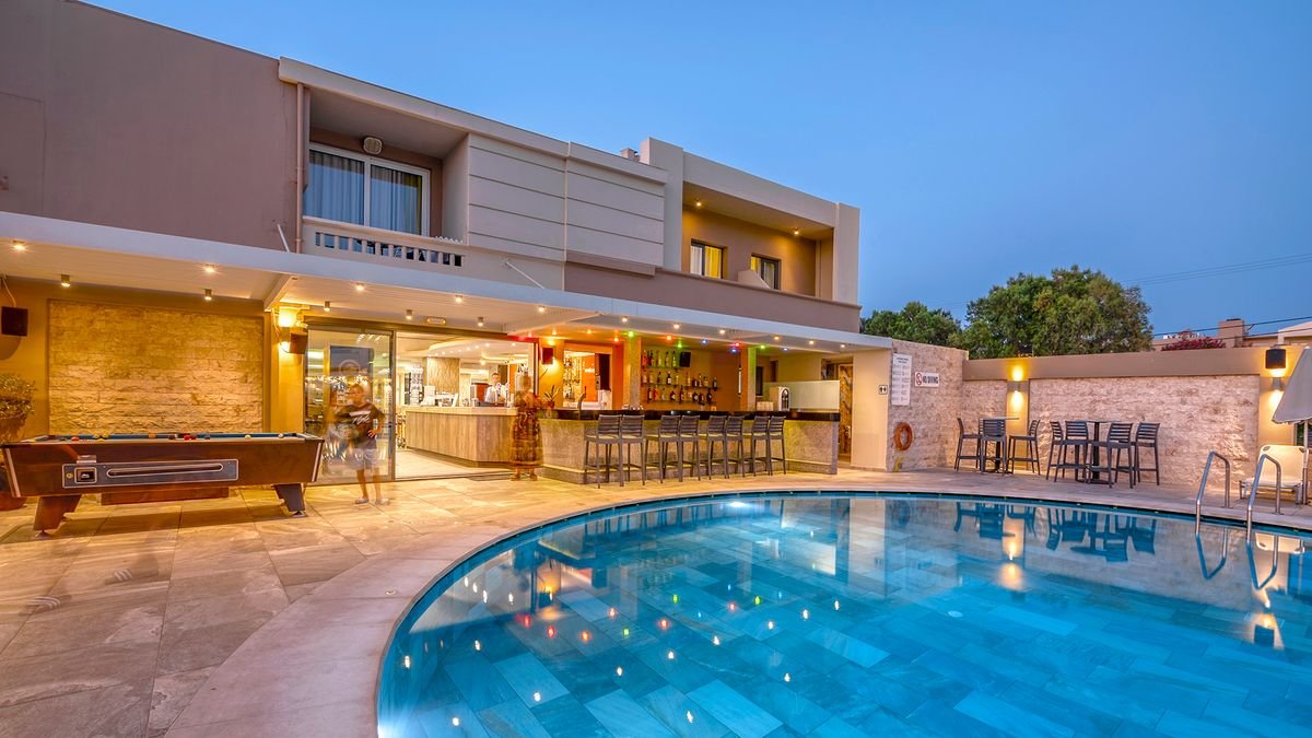 Przestronny, zadbany kompleks usytuowany tuż przy plaży, w spokojnej części Maleme. Obiekt dysponuje zróżnicowaną ofertą pokoi, dzięki czemu każdy znajdzie tu warunki zakwaterowania odpowiadające własnym potrzebom. Hotel dobrze nadaje się na spokojny, rodzinny wypoczynek, a tętniący życiem kurort Platanias znajduje się w odległości kilku kilometrów. Hotel jest także świetną bazą wypadową do Chanii, uważanej za najpiękniejsze miasto na wyspie.