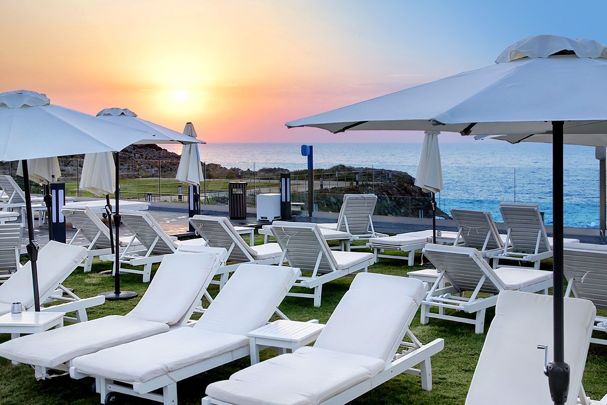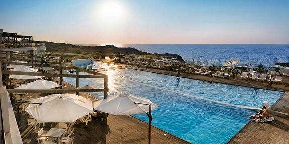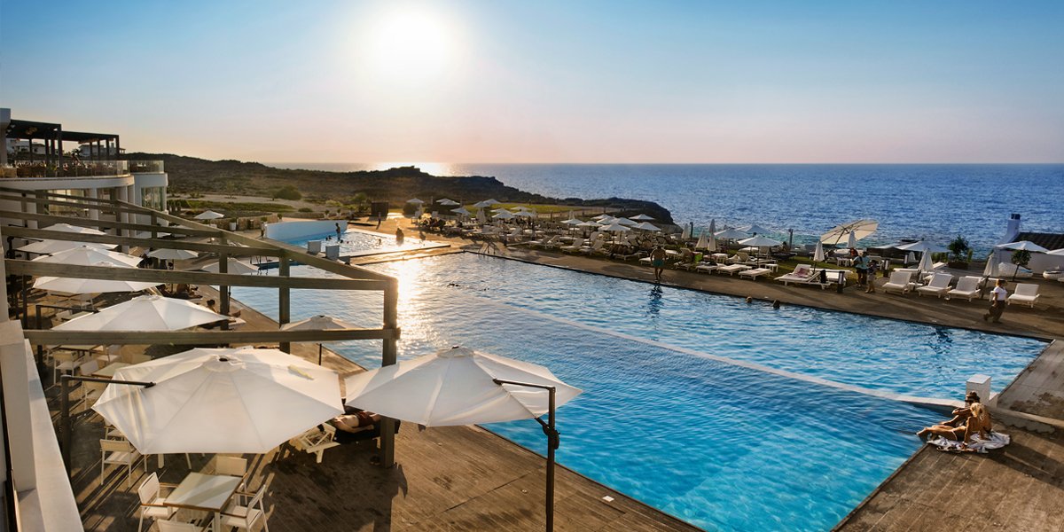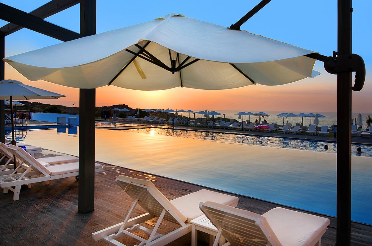Położony na skalistym wybrzeżu malowniczego półwyspu Akrotiri, z zachwycającym widokiem na morze. Odnowiony w 2015 r., zyskał zupełnie nowy wygląd i eleganckie, nowocześnie urządzone pokoje. Dumą hotelu jest kompleks basenów, w tym basen ze zjeżdżalniami - ulubione miejsce wodnych szaleństw dla dzieci. Na miejscu jest imponujące rozmiarami, profesjonalne Spa Ayus, z całym wachlarzem relaksujących i upiększających zabiegów. To idealne miejsce na spokojny wypoczynek z rodziną lub wypad we dwoje – hotel położony jest z dala od miasta, dzięki czemu można tu prawdziwie wypocząć.