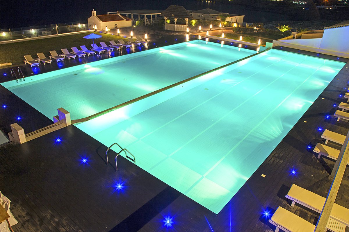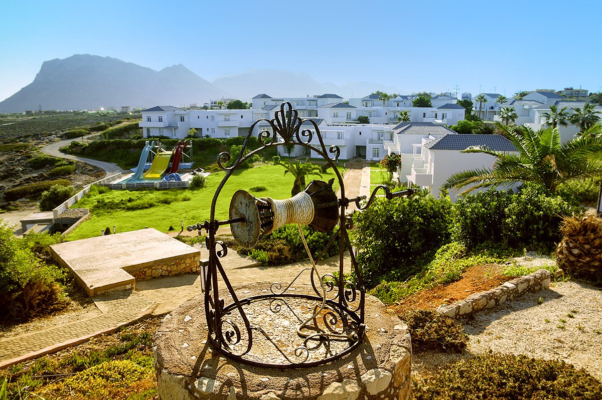 2 baseny, prostokątny kształt, słona woda, ok. 200 m², gł. 1,4-2 m, brodzik dla dzieci, słona woda, ok. 50 m², gł. 0,5 m, basen z 3 zjeżdżalniami dla dzieci, prostokątny kształt, słona woda, ok. 100 m², gł. 0,4-1,2 m, przy basenach bezpłatne parasole, leżaki, materace i ręczniki; siłownia, aerobik, aqua aerobik, nordic walking; miniklub (4-12 lat), animacje dla dorosłych i dzieci (6 razy w tyg.; od końca czerwca do połowy września), wieczór kreteński (raz w tyg.).