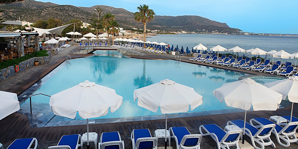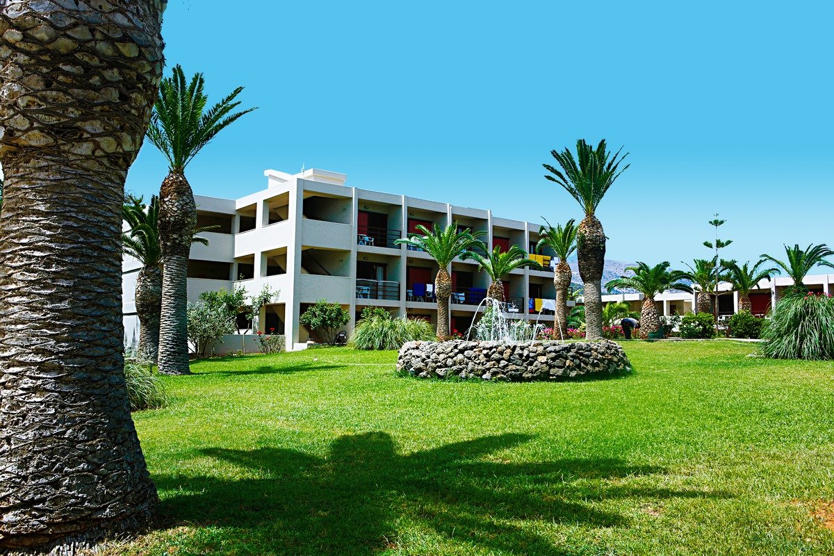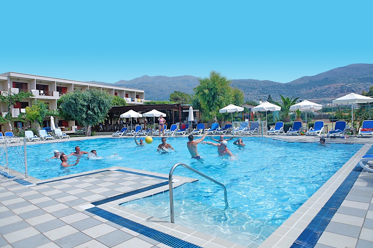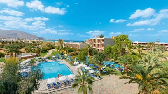 czterogwiazdkowy, zbudowany w 1977 r., odnowiony w 2002 r. i 2014 r., kilka budynków, 278 pokoi, 3 piętra, winda (tylko w jednym budynku), eleganckie lobby, całodobowa recepcja, restauracje: główna – kuchnia międzynarodowa i lokalna, dania w formie bufetu, Taverna – dania w formie bufetu, kuchnia śródziemnomorska; w restauracjach dostępne foteliki i menu dla dzieci, dania wegetariańskie, 2 bary: przy basenie i przy plaży; sklep z tradycyjnymi wyrobami kreteńskimi; taras, ogród, bezpłatny internet bezprzewodowy; akceptowane karty kredytowe: Visa, MasterCard.