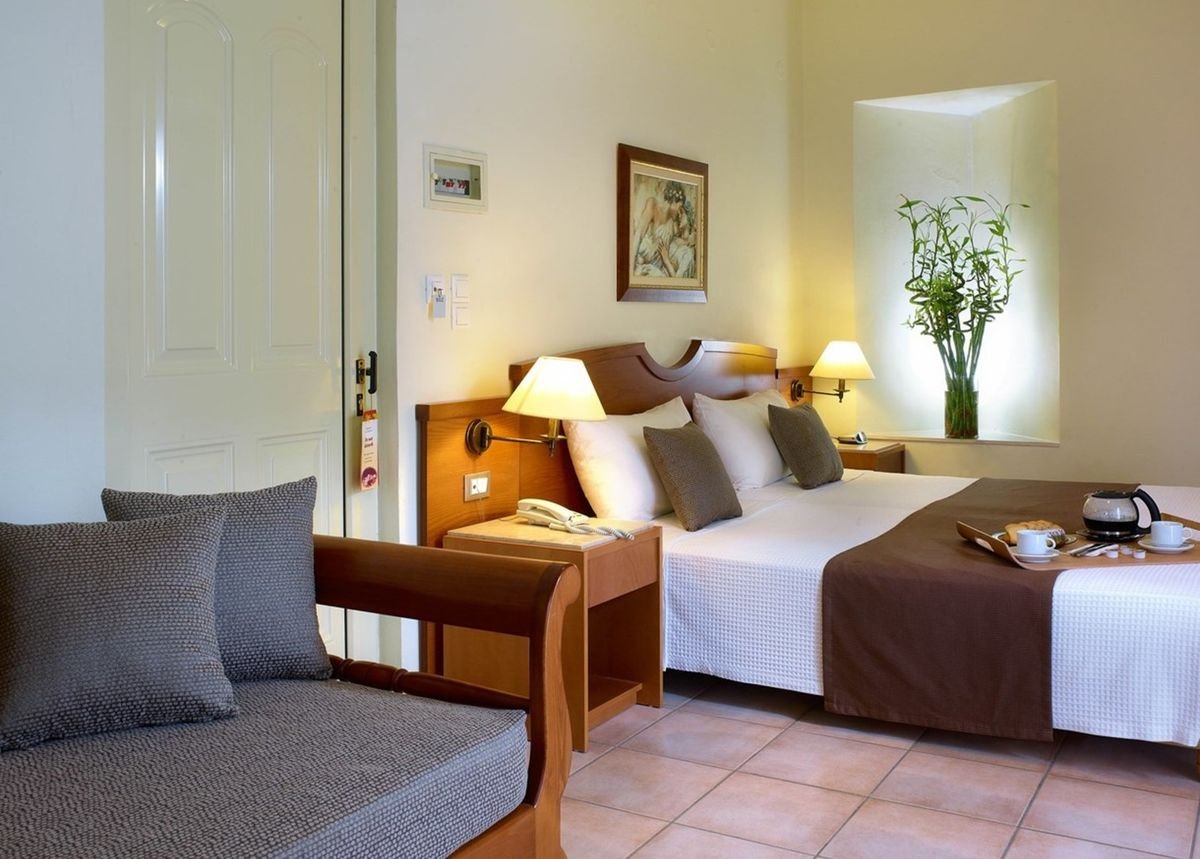 Położony przy plaży, kameralny hotel składający się z otoczonego zielenią kompleksu budynków w niskiej zabudowie, to doskonała opcja dla wszystkich, którzy chcą korzystać z atrakcji wakacyjnego kurortu jednocześnie wypoczywając w spokojnym otoczeniu. Do dyspozycji Gości przestronne pokoje, studia, apartamenty i junior suite, więc wygodnie może tu spędzić urlop rownież rodzina z dziećmi, czy paczka przyjaciół. Na miejscu basen z tarasem do opalania i barem, w odległości spaceru lokalne knajpi i restauracje. Świetna baza wypadowa do zwiedzania Chanii i innych, malowniczych zakątków wyspy!