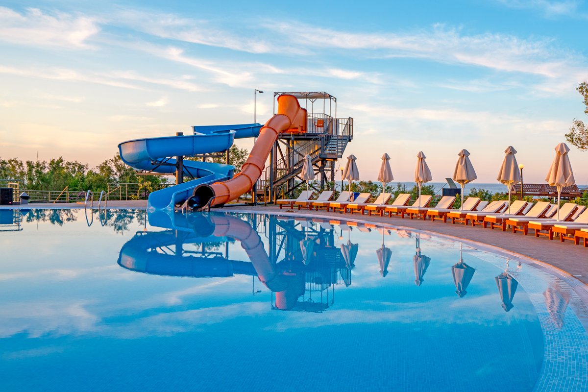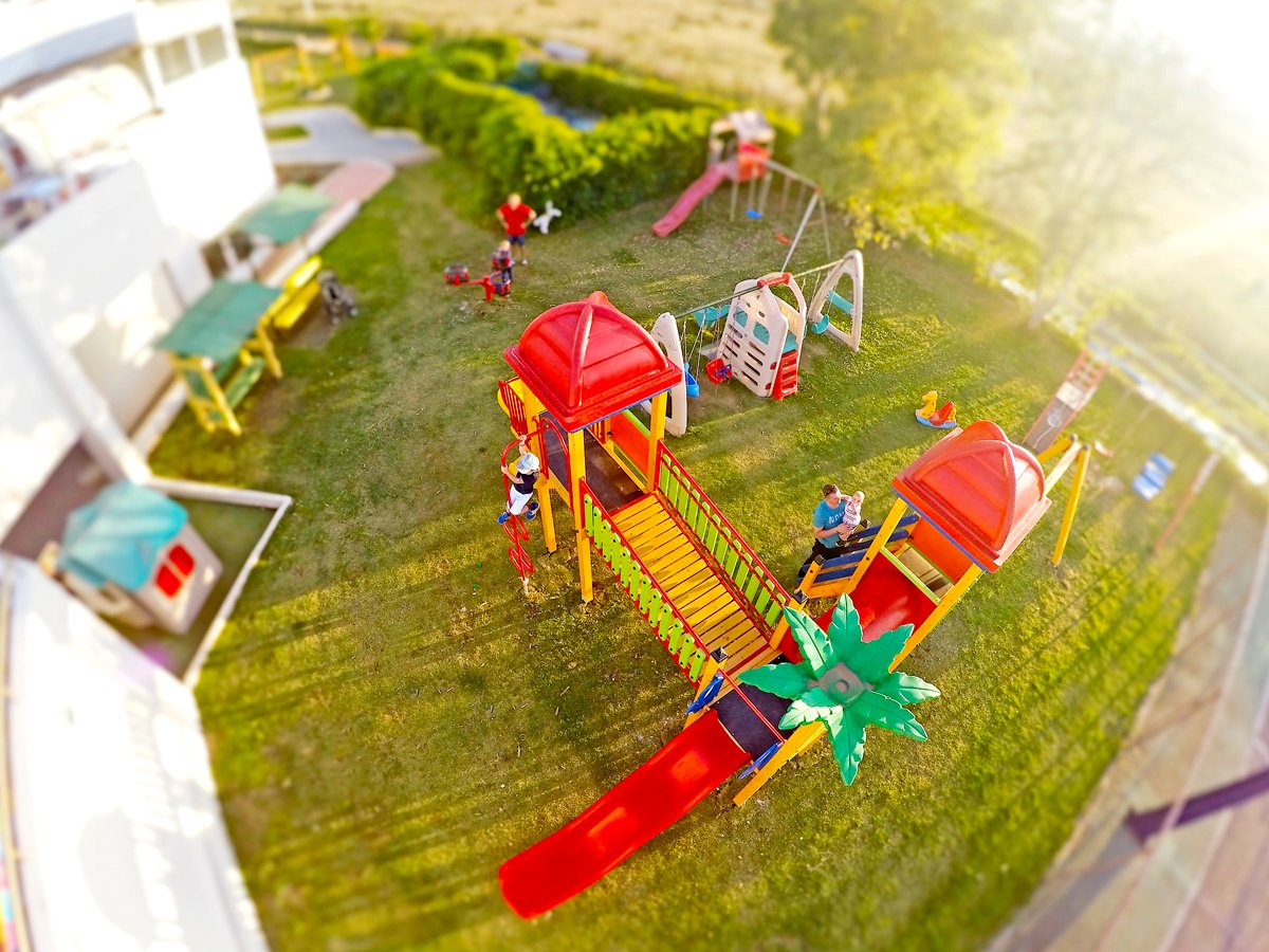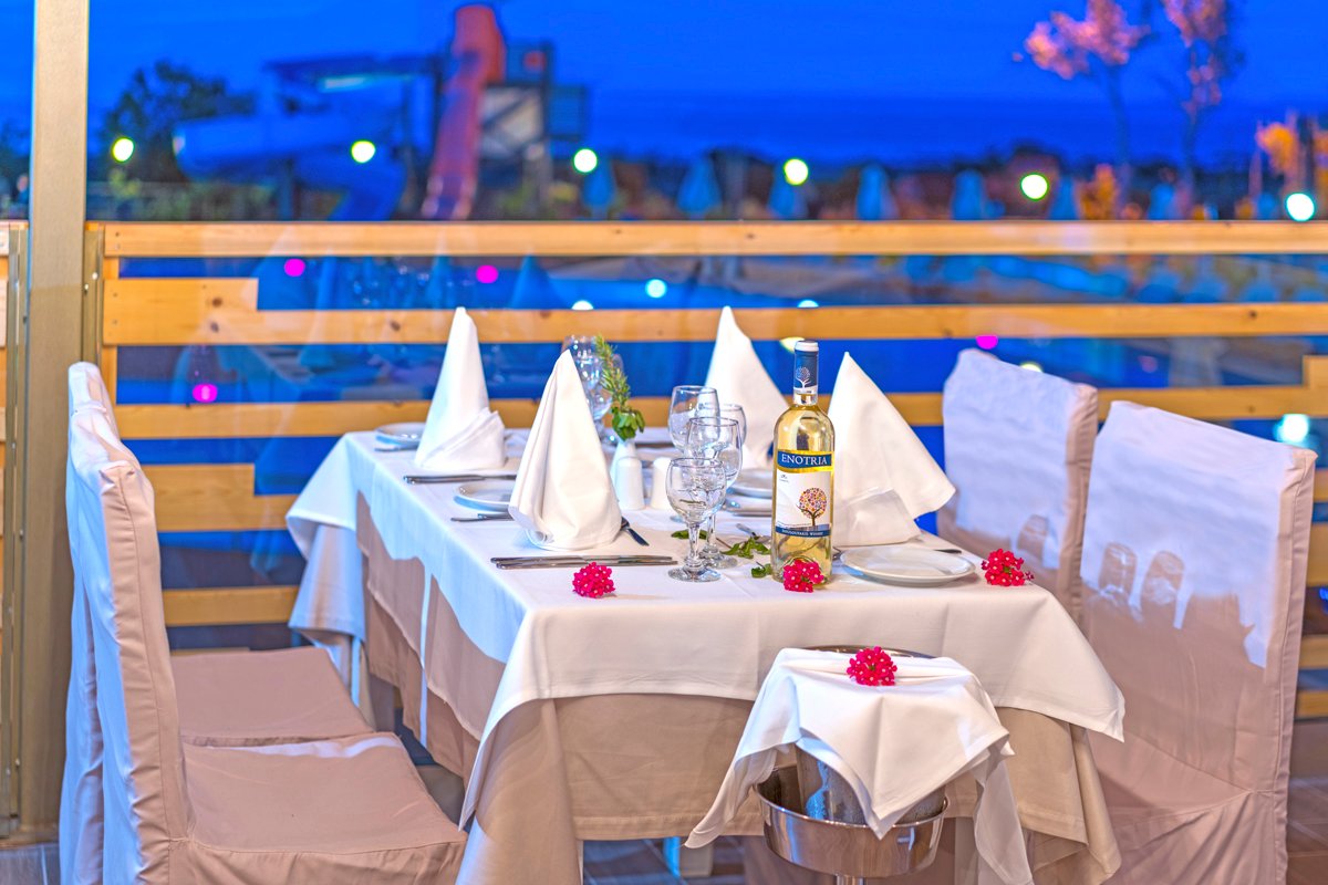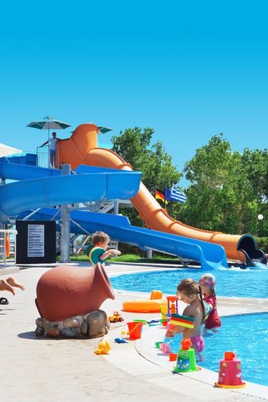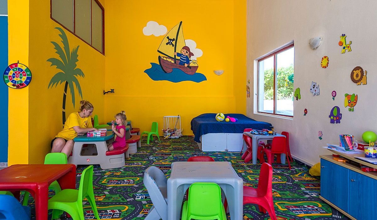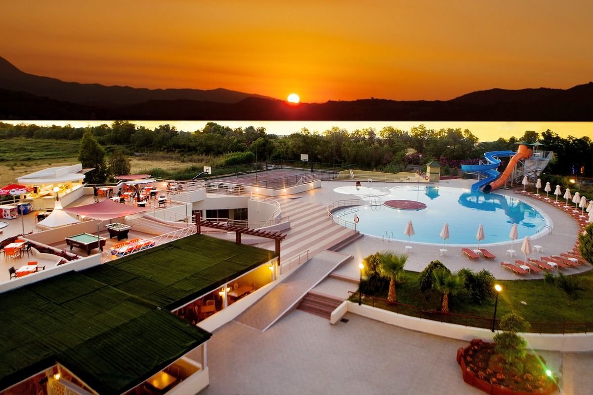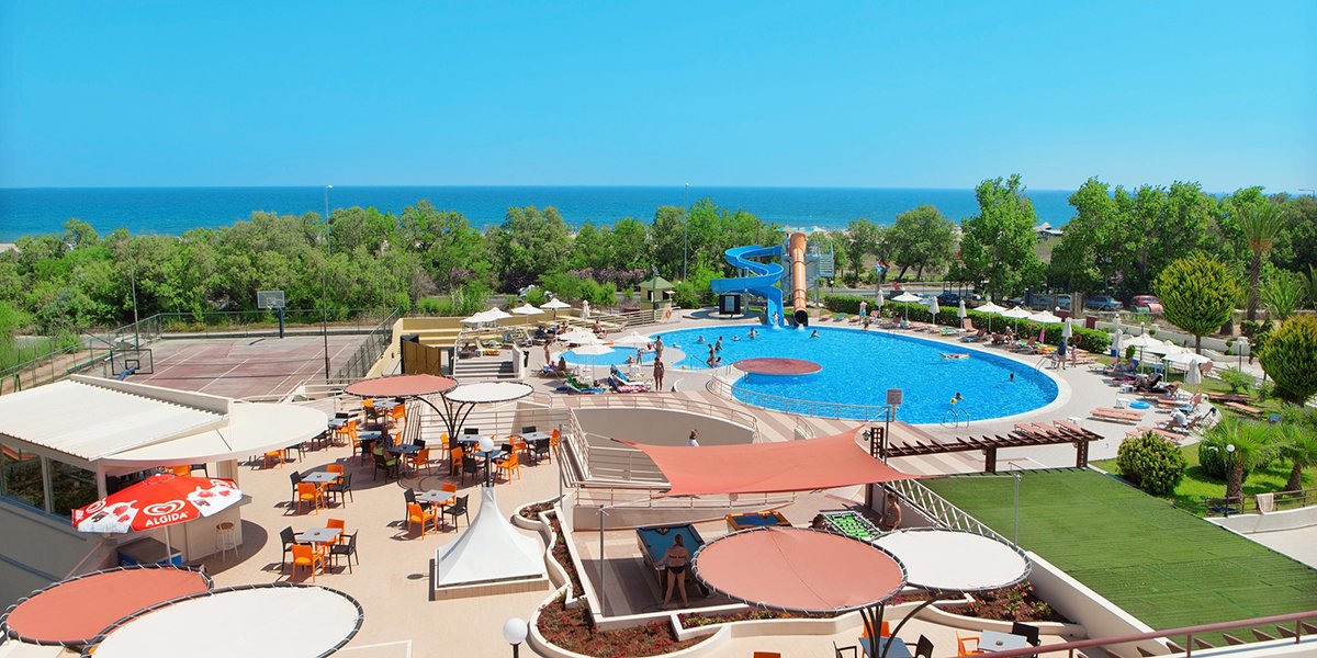 2 baseny, nieregularny kształt, słodka woda: ok. 700 m², gł. 0,6-1,4 m, 2 zjeżdżalnie (dla dzieci powyżej 5 lat), ok. 400 m², gł. 1-1,5 m, przy basenie bezpłatne parasole i leżaki, ręczniki za kaucją (ok. 10 EUR); kort tenisowy z wypożyczalnią sprzętu, boisko do koszykówki, siłownia; plac i pokój zabaw dla dzieci, miniklub (3-12 lat), amfiteatr, animacje dla dorosłych i dzieci: aqua aerobik, gry i zabawy dla dzieci, wieczorny show, minidisco, tenis stołowy, rzutki; za opłatą: piłkarzyki (ok. 0,5 EUR), bilard (ok. 2 EUR), paintball, gokarty; centrum wellness: sauna, jacuzzi, masaże, zabiegi na twarz i ciało, manicure, pedicure.