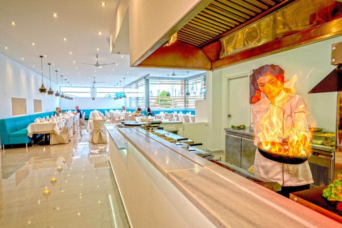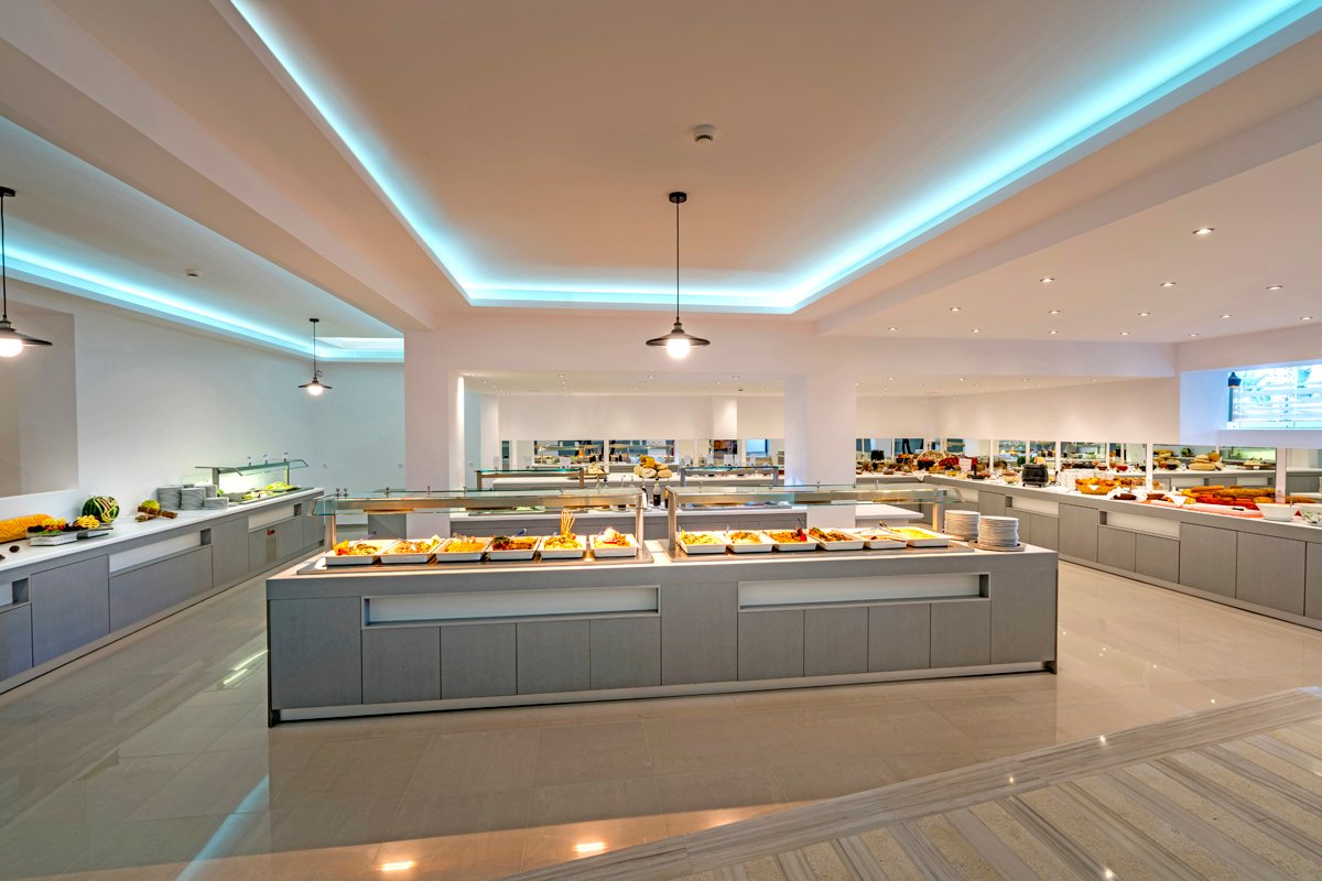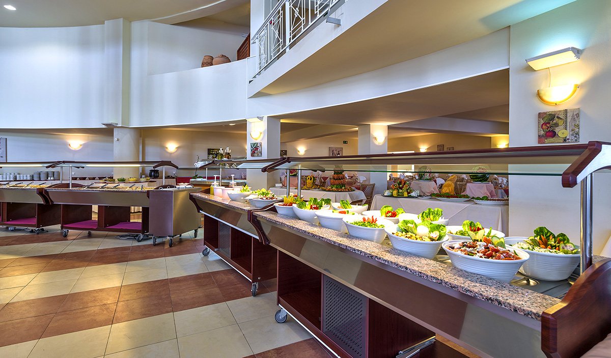 śniadanie (7.30-10.00), późne śniadanie (10.00-10.30), obiad (12.30-14.30), kolacja (18.30-21.30) w formie bufetu w restauracji; przekąski (12.00-15.00), lody dla dzieci (14.00-18.00), kawa i ciastka (14.00-18.00), przekąski w barze przy plaży (10.00-16.00), późne przekąski (23.00-24.00) w barze przy basenie; napoje bezalkoholowe, lokalne i wybrane importowane napoje alkoholowe w wyznaczonych barach (10.00-24.00); dodatkowo 5 rodzajów oryginalnej kawy w wyznaczonym barze; wymagane noszenie opasek all inclusive.