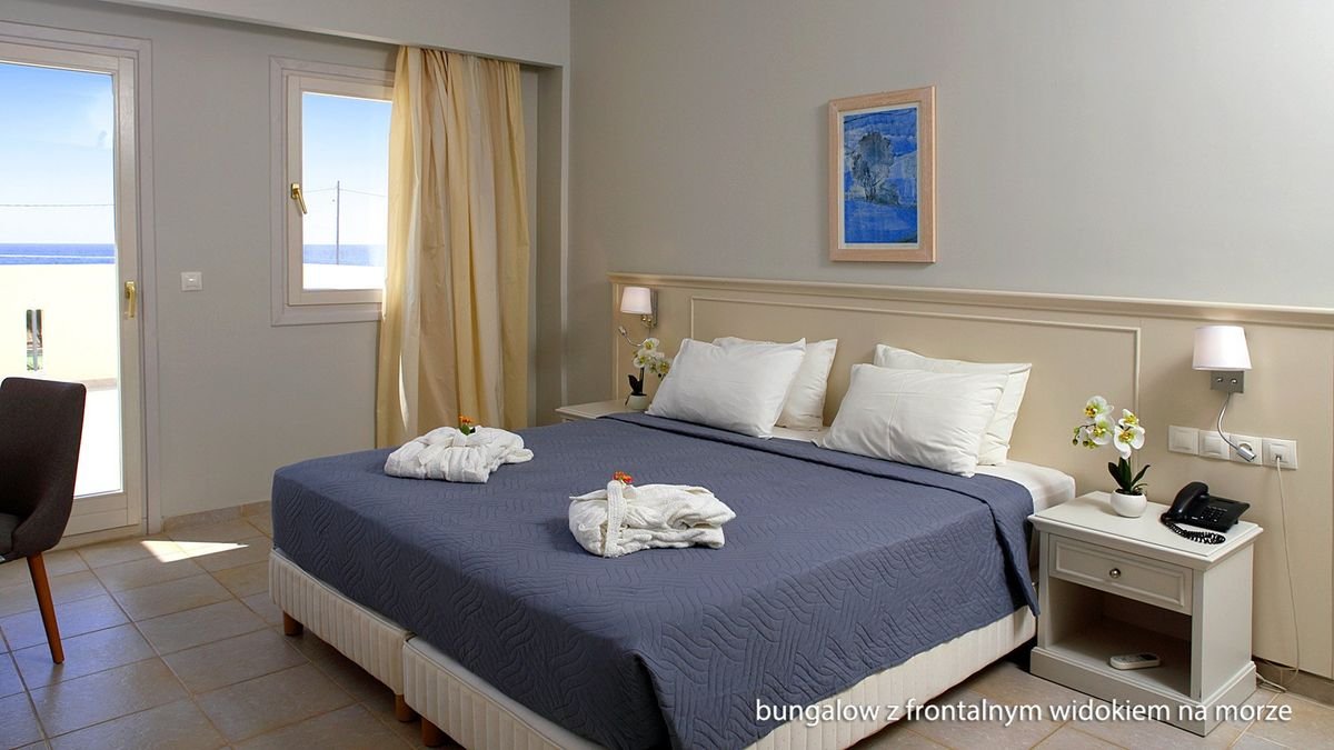 Zatopiony w zieleni pięknego ogrodu, zadbany, położony jest tuż przy jednej z najpiękniejszych plaż na Krecie, wyróżnionej certyfikatem Błękitna Flaga. Bardzo dobra grecka kuchnia, czyste pokoje i baseny oferują wszystkie udogodnienia, zarówno dla relaksu, jak i rozrywki. Na aktywnych czeka kort tenisowy, a kurort Ierapetra z lokalnymi tawernami i sklepikami pozostaje w zasięgu paru kilometrów.