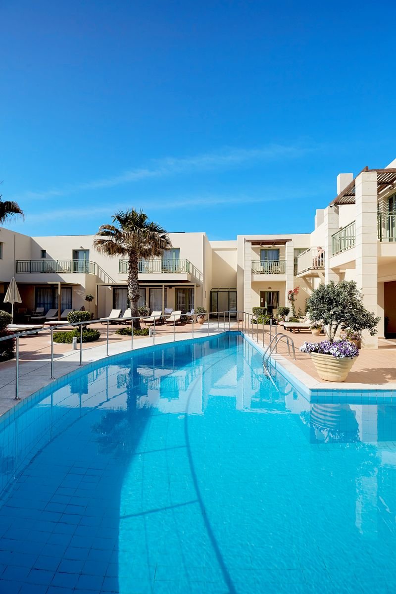 Położony w wyjątkowo cichym i malowniczym miejscu, wśród wzgórz, przy samej plaży, przeznaczony jest wyłącznie dla dorosłych Gości. Ceniony za wysoki standard świadczeń, przestronne, wygodne pokoje i kameralną atmosferę. Ciekawie zaprojektowane baseny są ładnie wkomponowane w nowoczesną architekturę hotelu. Uroku wakacjom dodaje przepiękne rybackie miasteczko Kolymbari, z typowo kreteńskim klimatem, słynące z doskonałych restauracji rybnych i 400-letniego klasztoru Gonias. Świetna baza wypadowa do najbardziej atrakcyjnych miejsc zachodniej i południowej Krety.