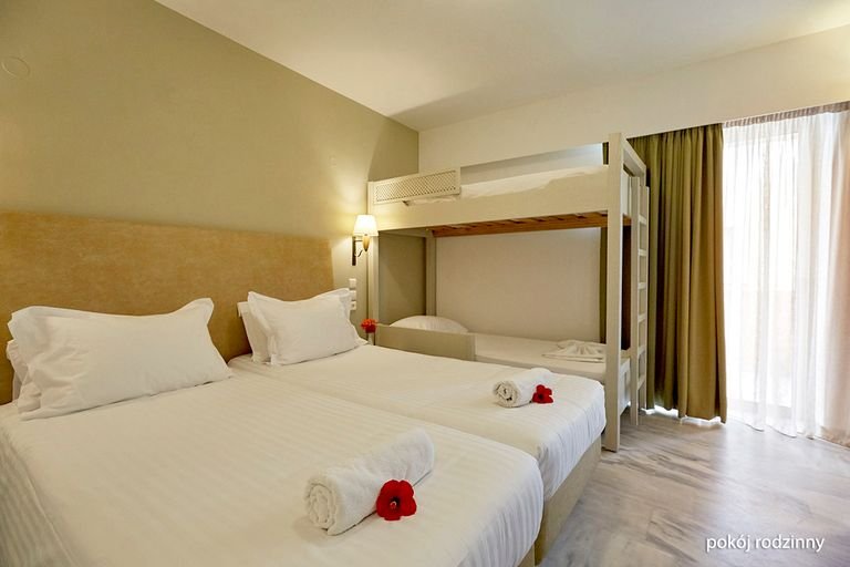 Świetne miejsce na beztroskie wakacje, blisko pięknej plaży z piaskiem o złocistym odcieniu, z niezapomnianym widokiem na wyspę Theodoroi, w samym centrum kurortu. Stylowy i zadbany, z ładnymi wnętrzami, gwarantuje najwyższą jakość usług i komfortowy pobyt. Ładny basen, zadbany ogród z piniami i palmami oraz przyjemne bary zapewniają pełen relaks. Goście doceniają także hotelową kuchnię ze smacznymi i urozmaiconymi potrawami.