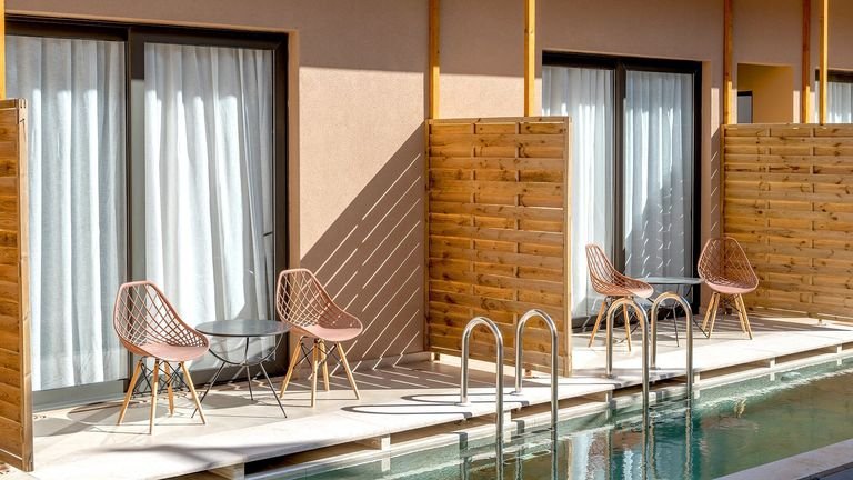 Idealne miejsce na chillout i dobrą zabawę! Kameralny i stylowy, tylko dla dorosłych, położony blisko piaszczystej plaży i centrum Stalidy z mnóstwem wakacyjnych atrakcji, zaprasza na wypoczynek we dwoje w wyjątkowym otoczeniu. Na miejscu jest niewielki basen z leżakami i parasolami, gdzie przy muzyce można zrelaksować się i jednocześnie podziwiać piękny widok na morze. Do dyspozycji Gości jest także bar i restauracja, a do pełnego komfortu przygotowano nowoczesne i gustownie urządzone pokoje w stylu boho, również z bezpośrednim dostępem do basenu.