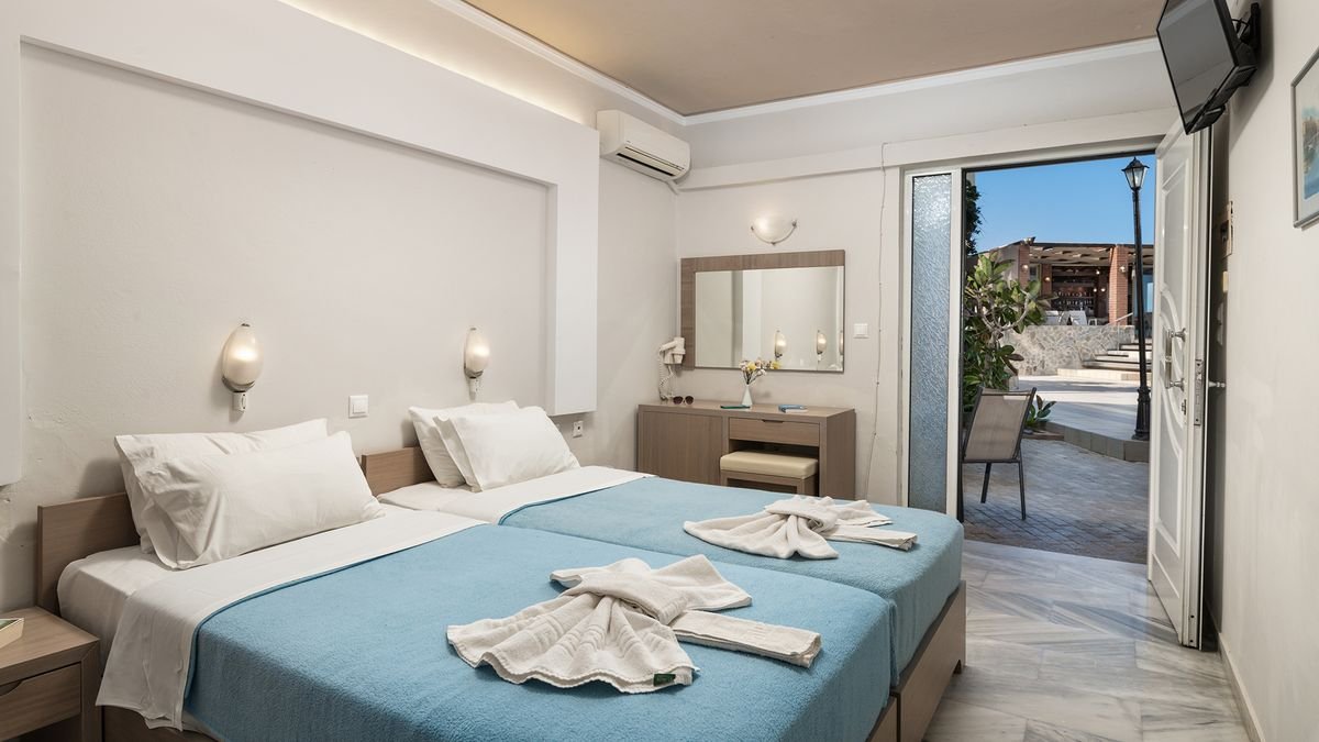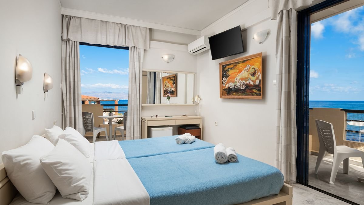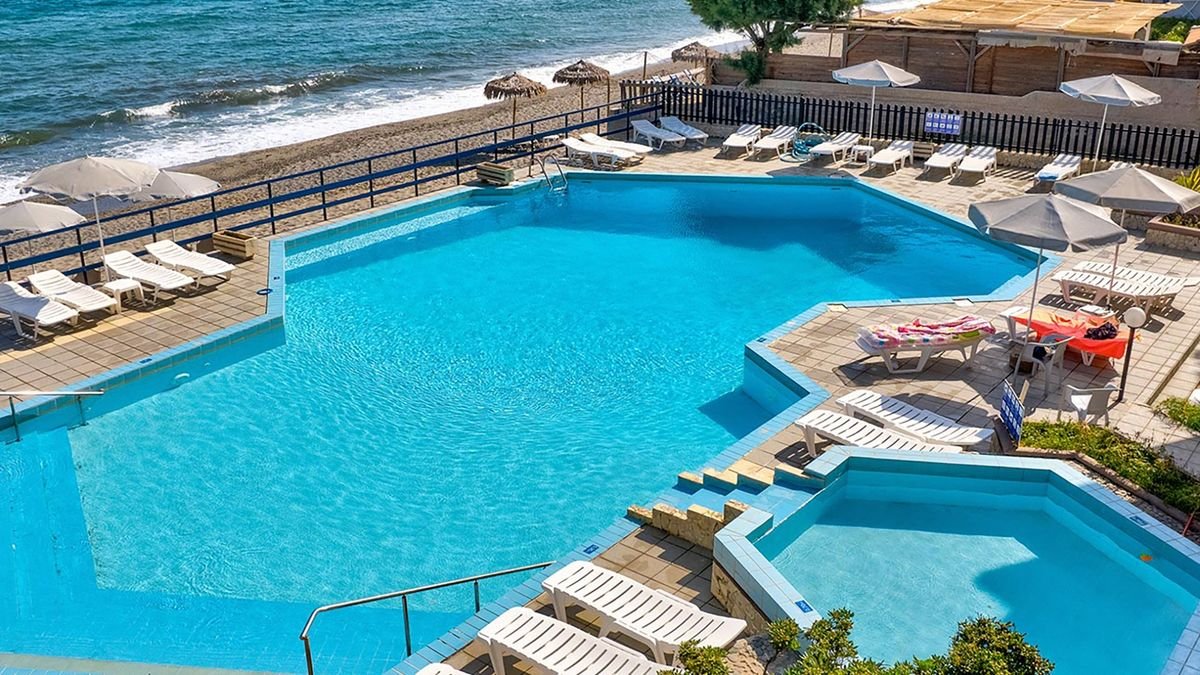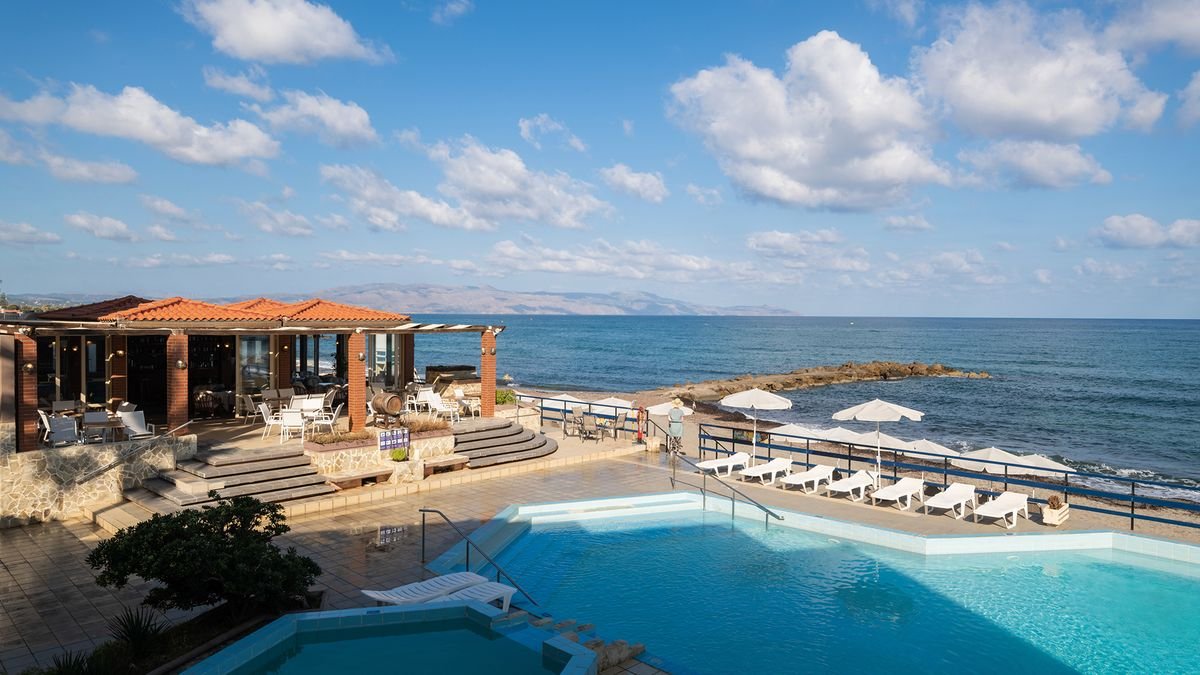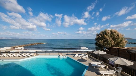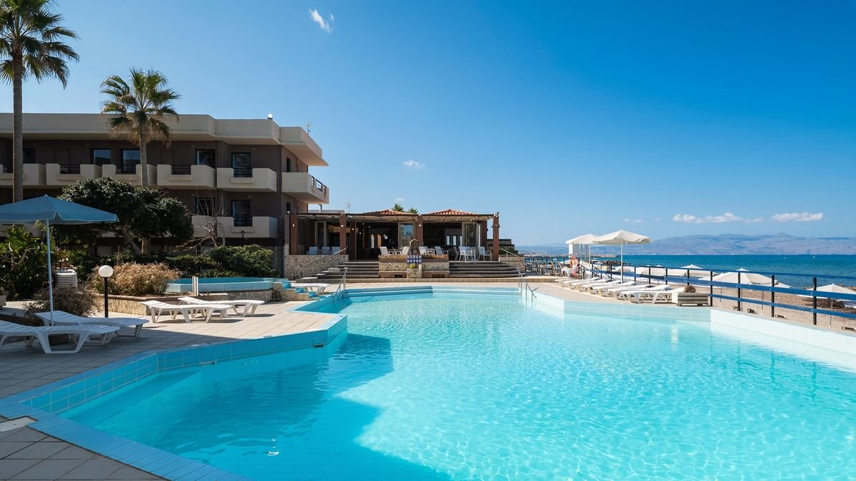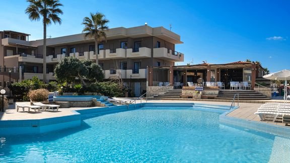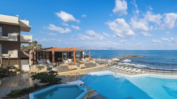 To świetne miejsce dla wszystkich ceniących sobie malownicze położenie, bliskość plaży i wyjątkową, kameralną atmosferę! Położony niedaleko centrum turystycznego miasteczka Agia Marina, tuż przy piaszczystej plaży z hotelowym barem, na którą można zejść wprost z basenu, składa się z 2 budynków w niskiej zabudowie z jedynie 50 pokojami! Z tarasu przy basenie podziwiać można cudowny widok na morze i wyspę Thodorou. To świetna baza wypadowa do zwiedzania pięknej i romantycznej Chanii z weneckim portem i urokliwym, starym miastem pełnym krętych alejek i klimatycznych knajpek.