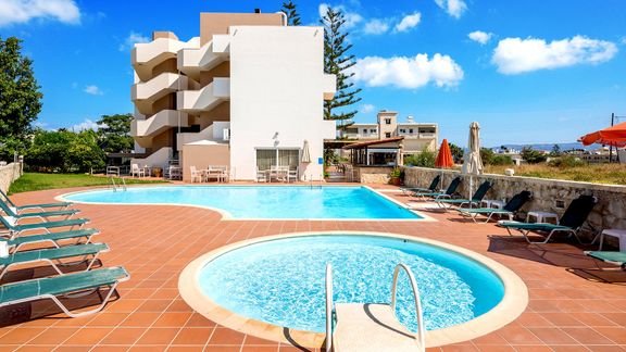 Kameralny, ze świetną wakacyjną atmosferą to doskonałe miejsce na słoneczne, greckie wakacje! Położony jest zaledwie kilka kroków od piaszczystej plaży oraz blisko centrum Kissamos ze sklepami i tawernami z doskonałą grecką kuchnią. Na Gości czekają praktycznie urządzone pokoje wyposażone we wszystkie wygody potrzebne do udanego wypoczynku. Na miejscu jest ładny basen, brodzik dla dzieci oraz plac zabaw. Okolica jest idealna na długie spacery, warto również wypożyczyć samochód i zwiedzić pobliskie urokliwe miejscowości z tradycyjną wyspiarską zabudową.